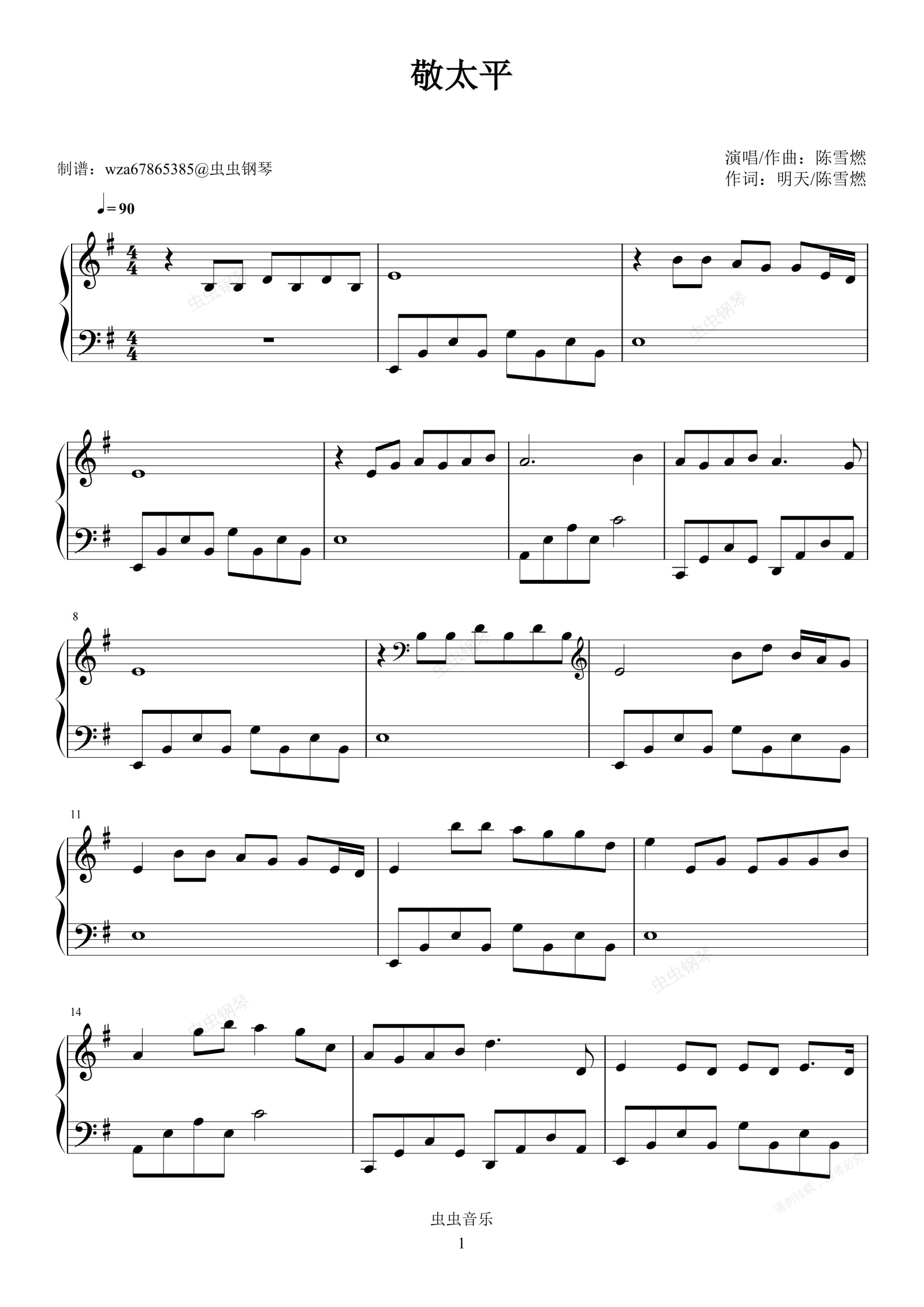 钢琴谱:敬太平
