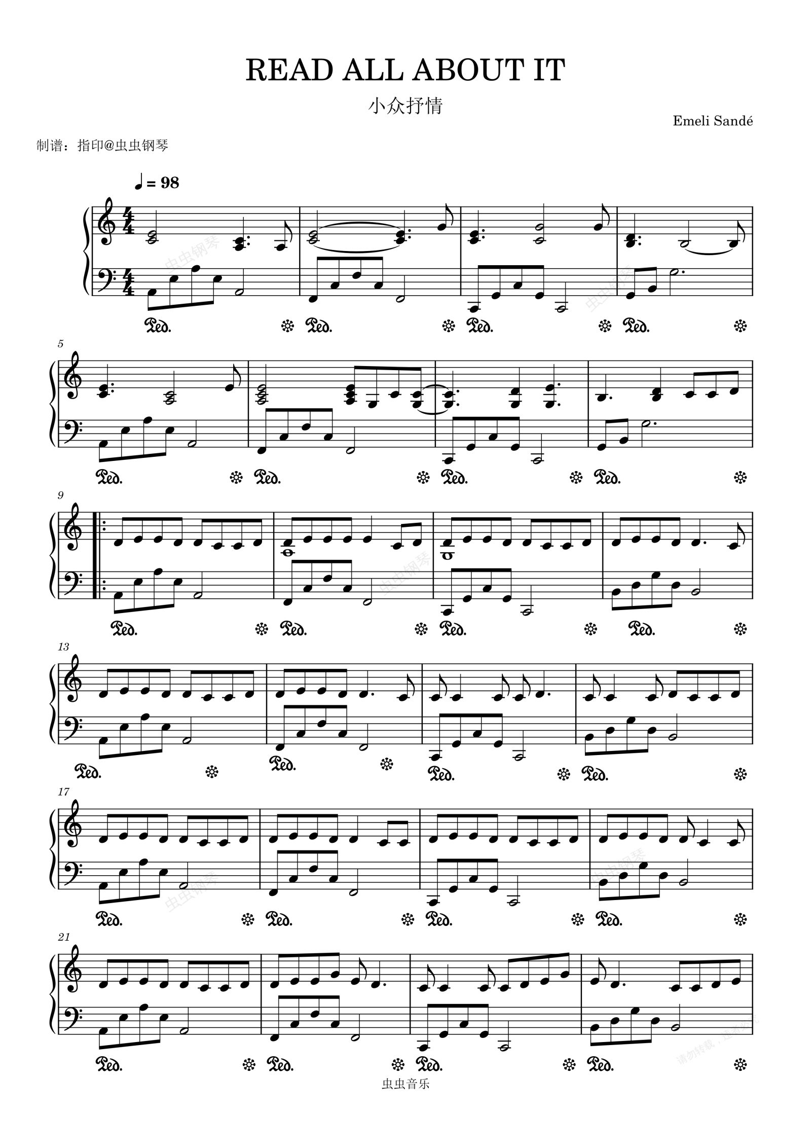 钢琴谱:C调版舒缓小众《READ ALL ABOUT IT》