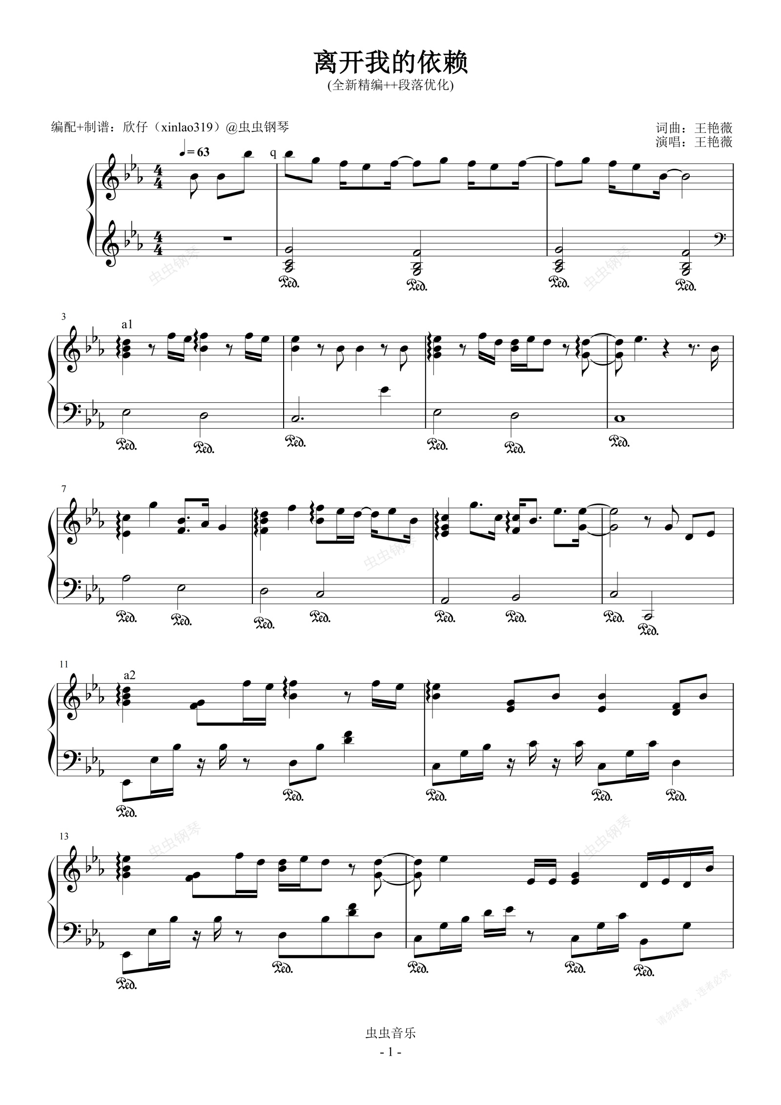 钢琴谱:离开我的依赖(原调降E、汪艳薇、段落优化)