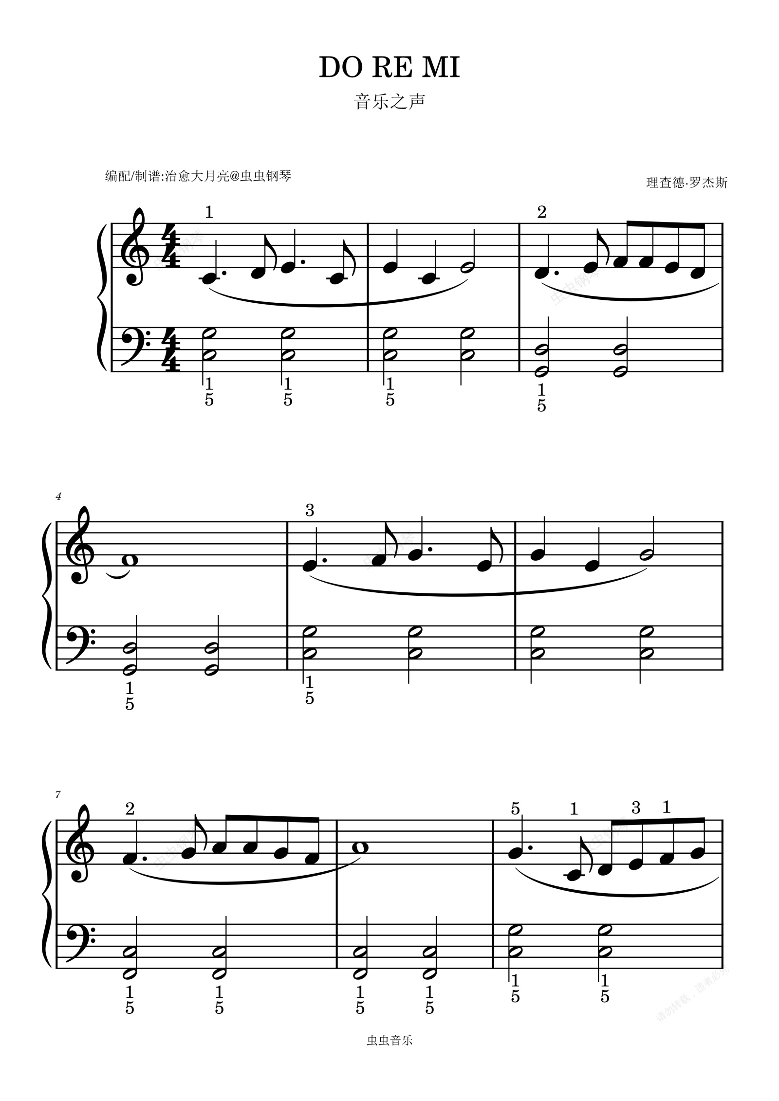钢琴谱:音乐之声 DOREMI 初学者带指法 大音符 视觉友好