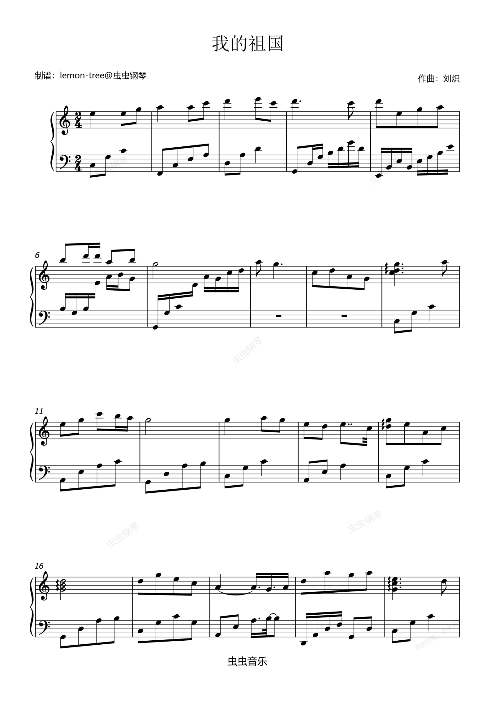 钢琴谱:我的祖国-轻量版