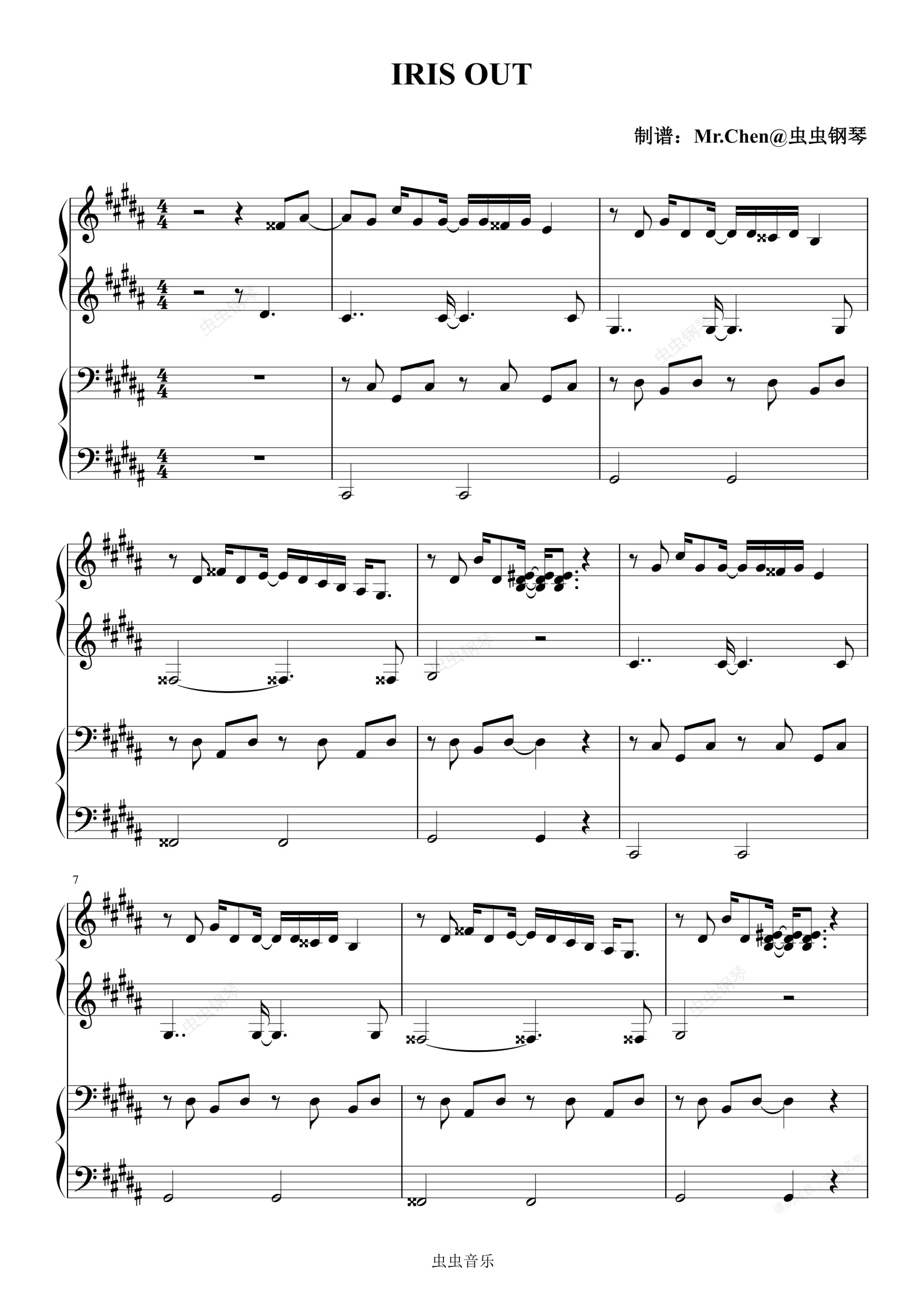 钢琴谱:IRIS OUT (四手联弹)- 动画电影《电锯人:蕾塞篇》主题曲