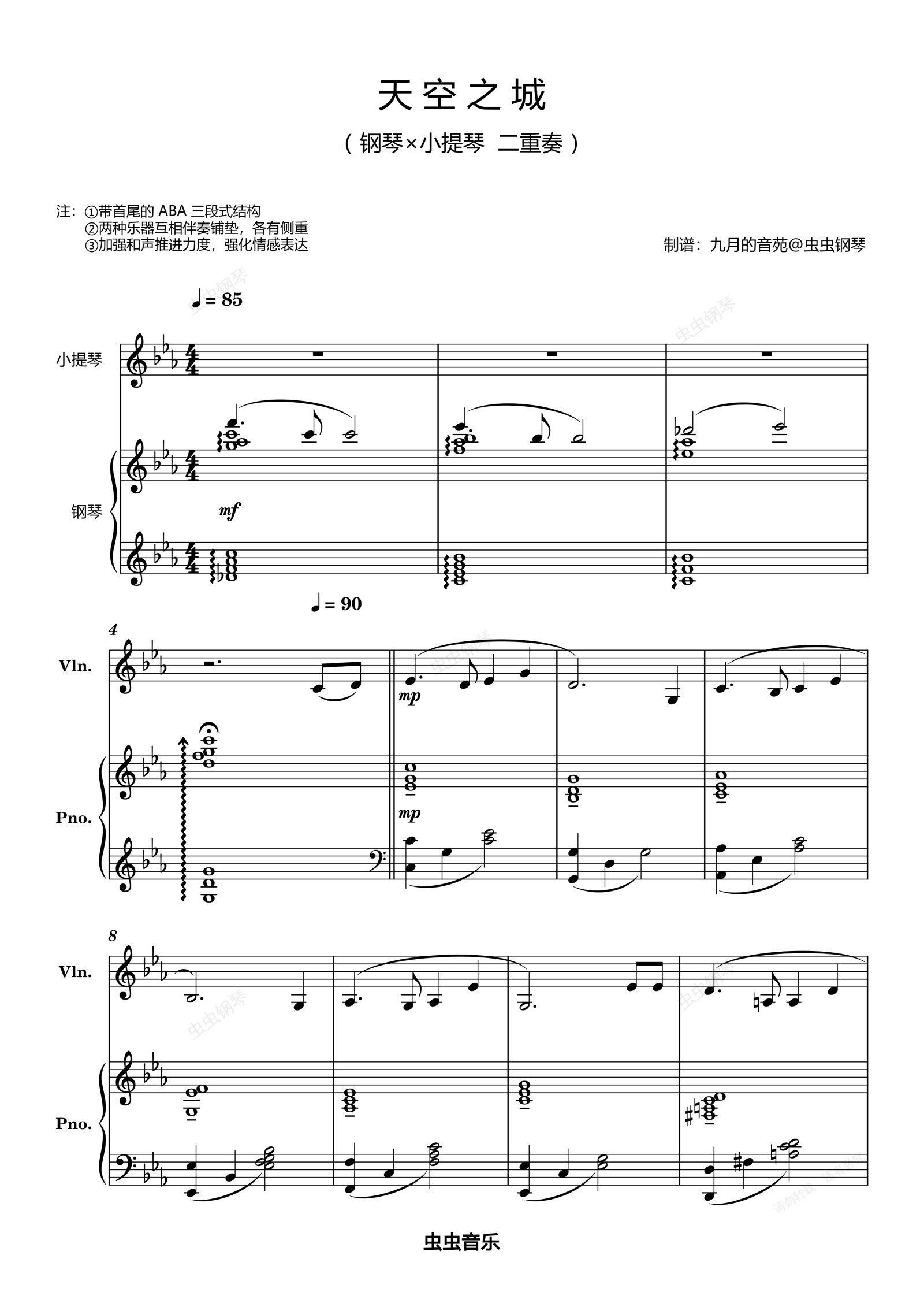 钢琴谱:【天空之城】钢琴×小提琴 二重奏(高级演奏版)
