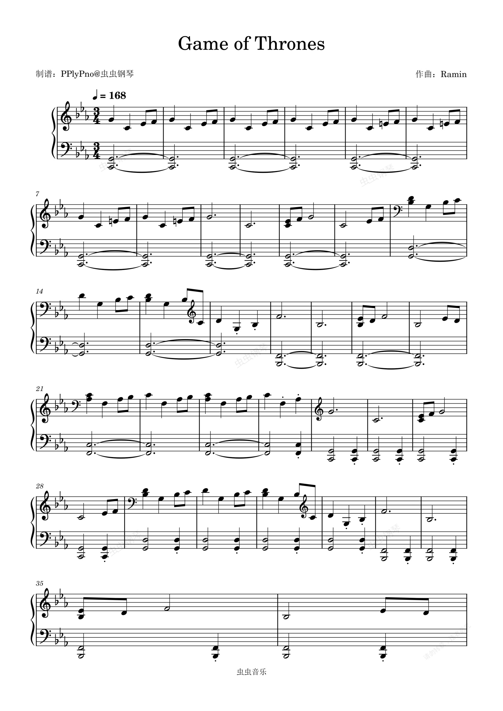 钢琴谱:Game of Thrones