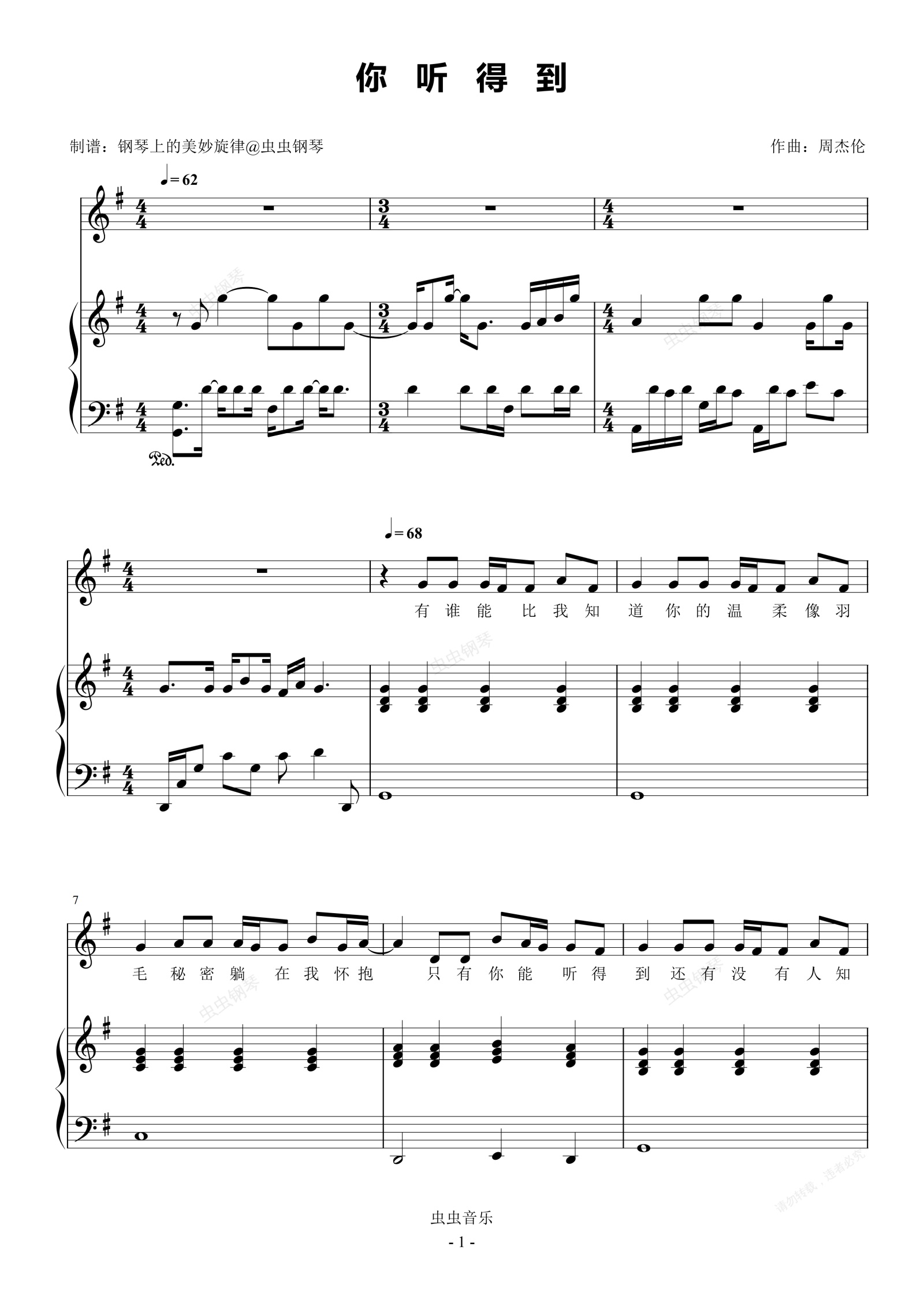 钢琴谱:你听得到 简易钢琴弹唱伴奏 带歌词 周杰伦