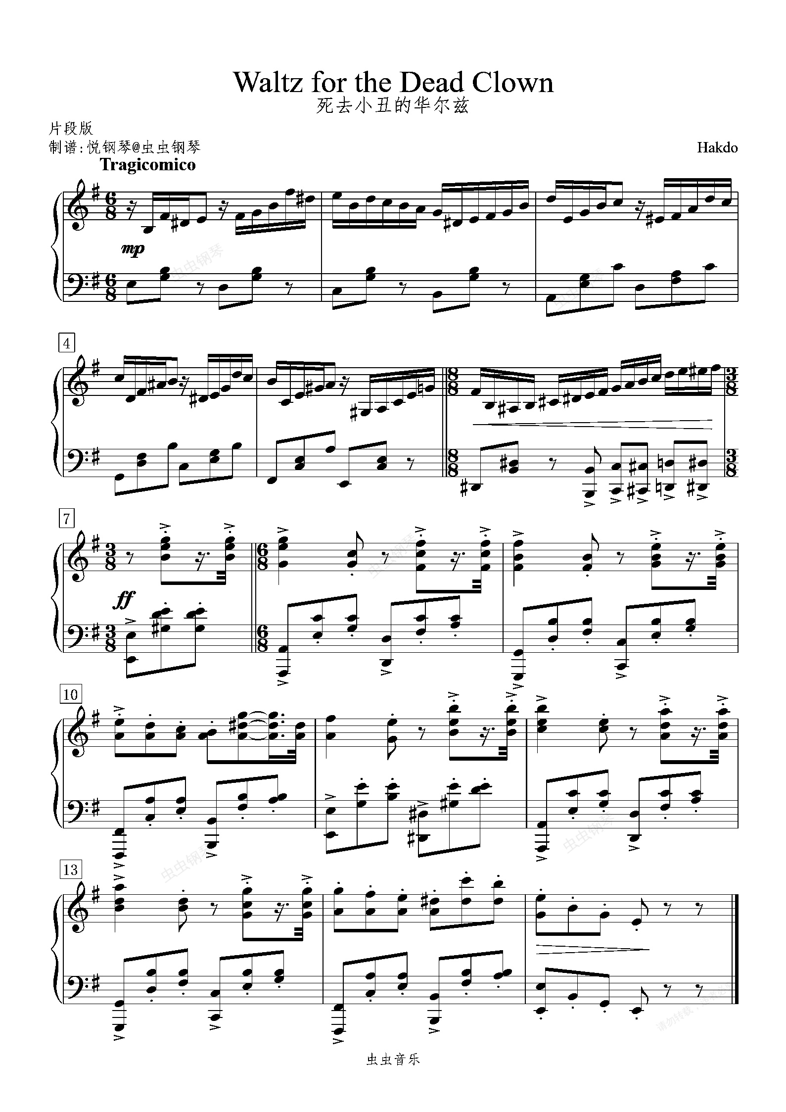 钢琴谱:死去小丑的华尔兹/Waltz for the Dead Clown-免费乐谱 【凄美】