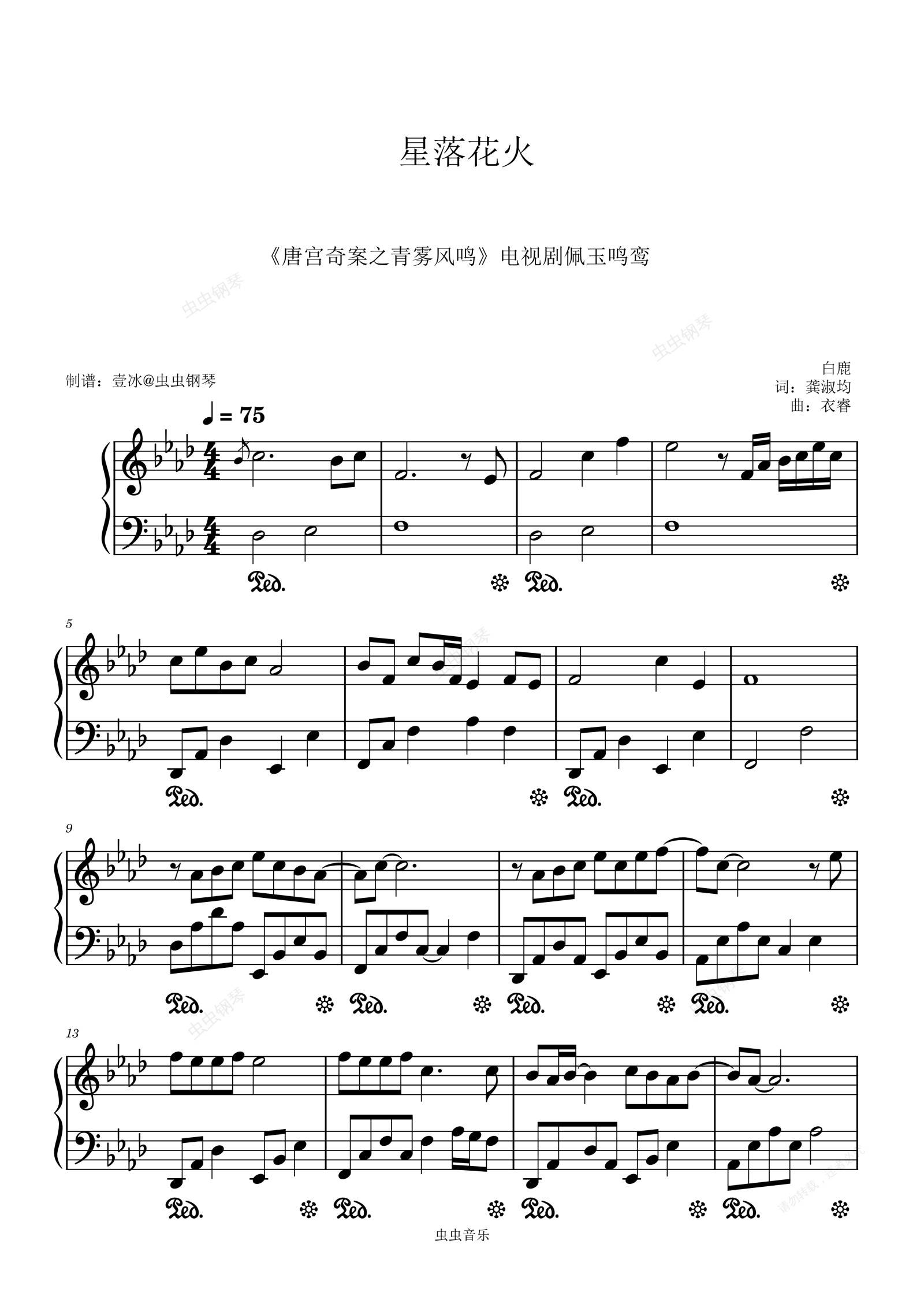 钢琴谱:星落花火 (《唐宫奇案之青雾风鸣》电视剧佩玉鸣鸾) - 原调