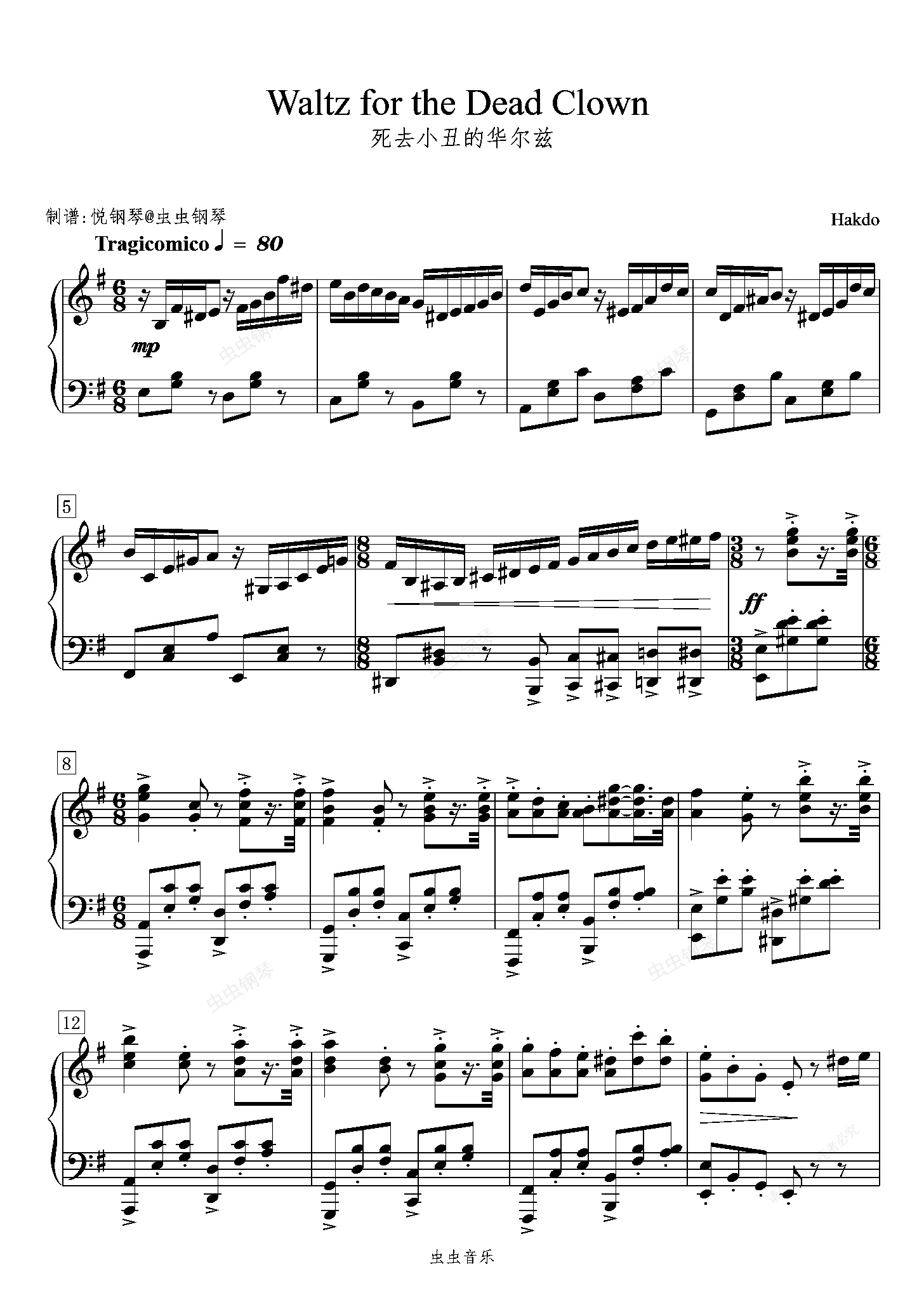 钢琴谱:死去小丑的华尔兹 /Waltz for the Dead Clown 【凄美】