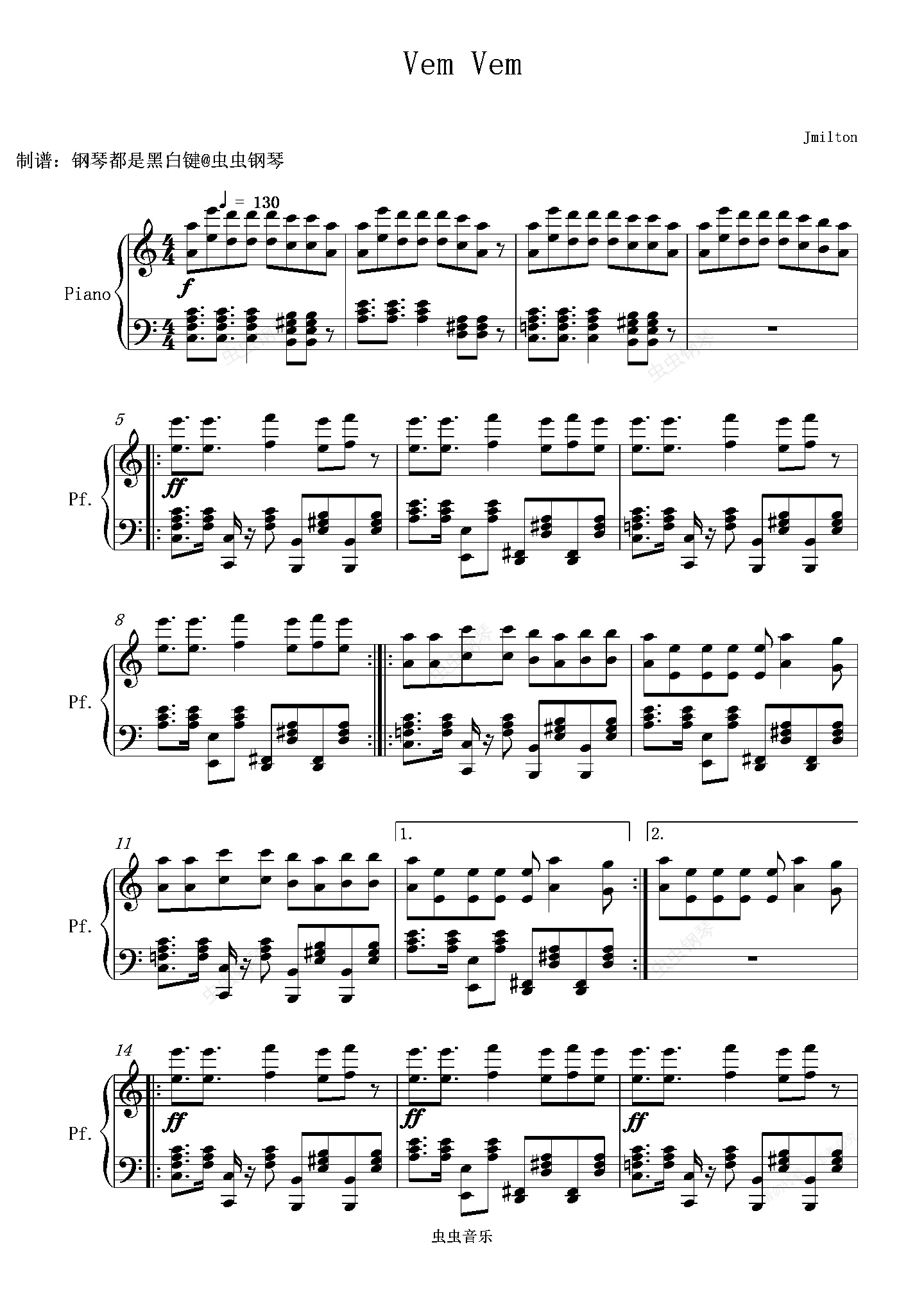 钢琴谱:(Funk)《Vem Vem》洗脑神曲