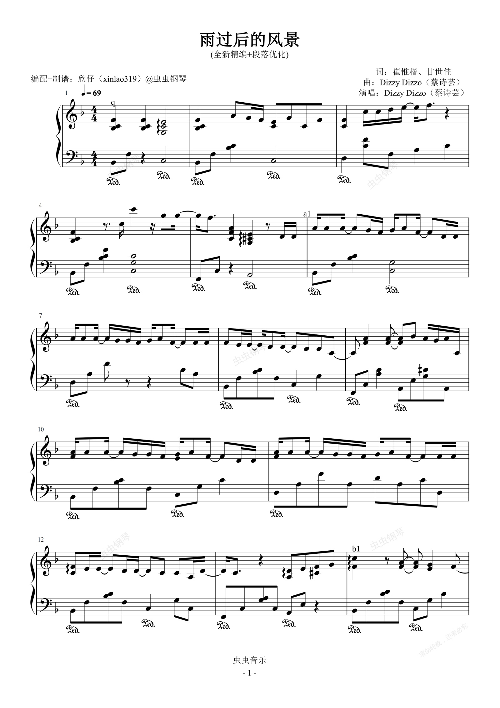 钢琴谱:雨过后的风景(F、Dizzy Dizzo蔡诗芸、段落优化)