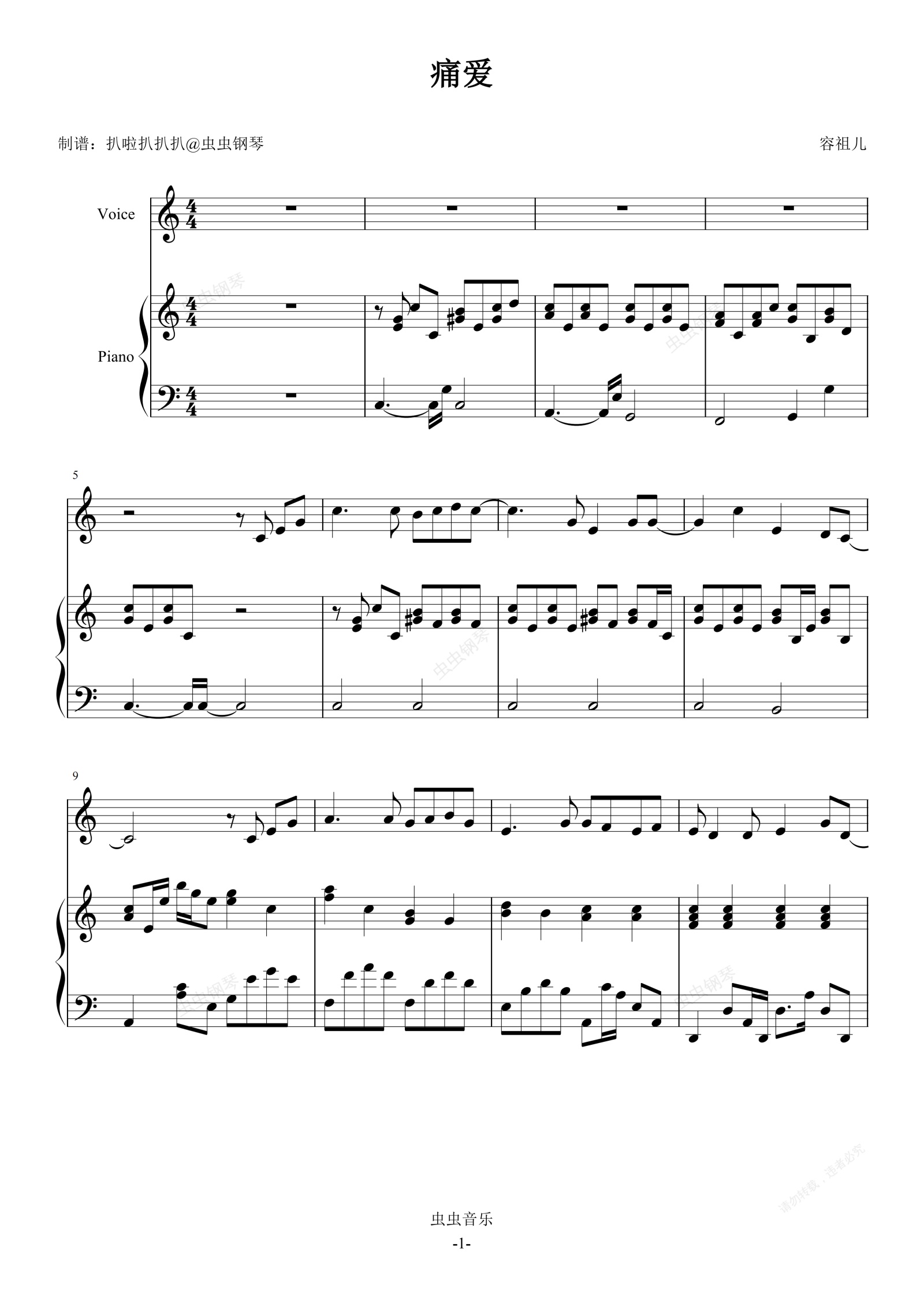 钢琴谱:《痛爱》-容祖儿-钢琴伴奏谱