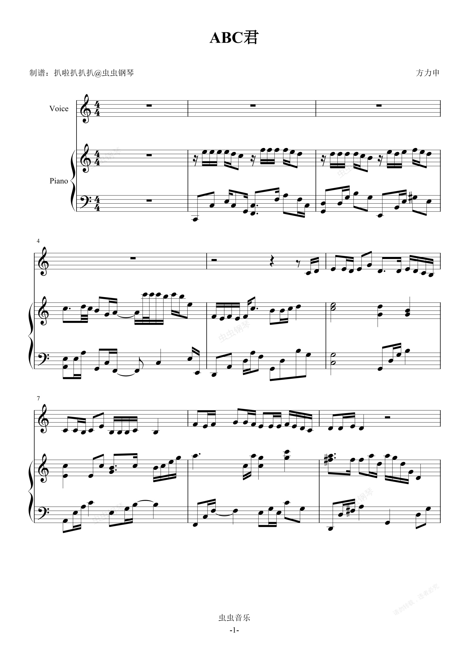 钢琴谱:《ABC君》-方力申-钢琴伴奏谱