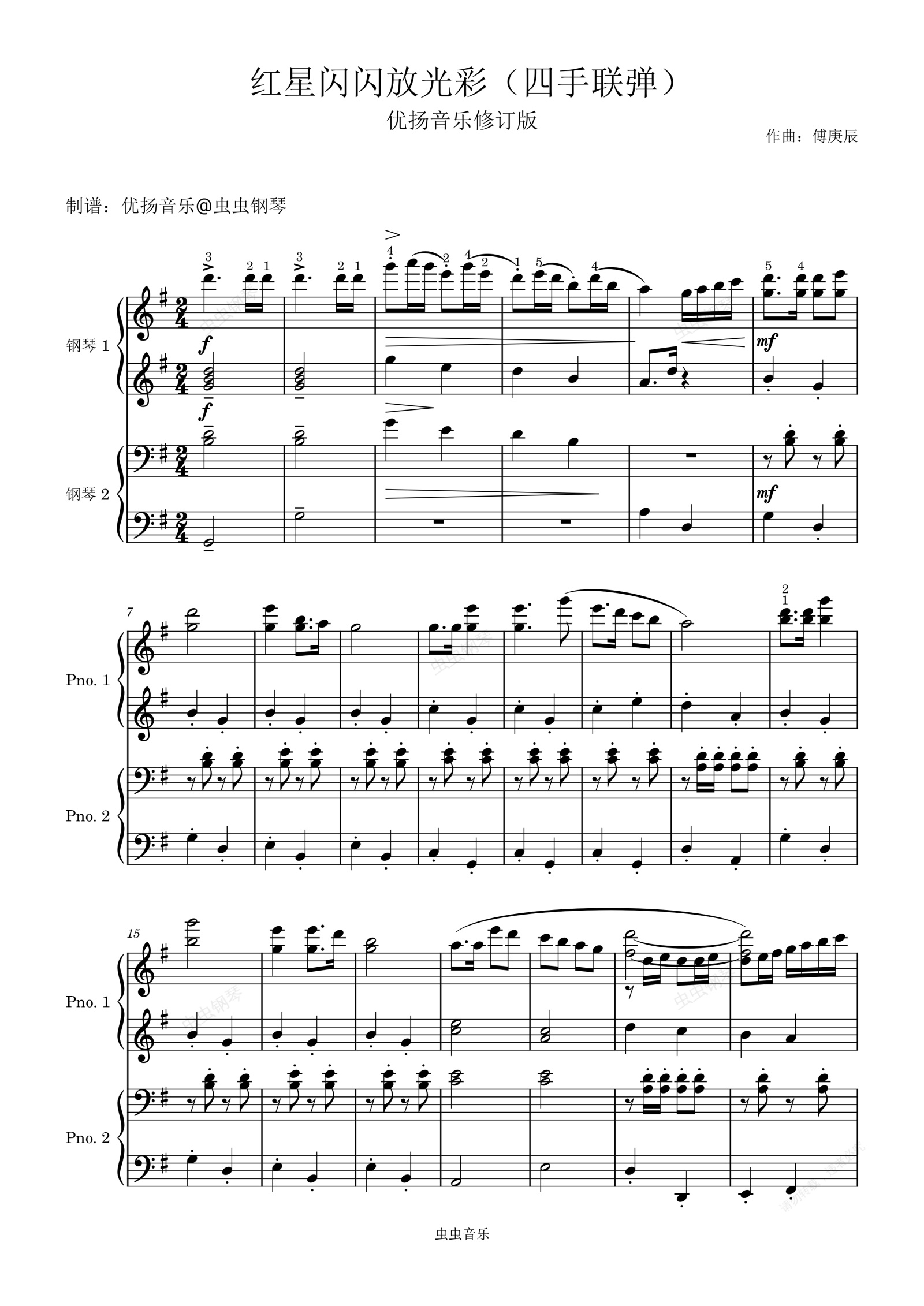 钢琴谱:红星闪闪放光彩(四手联弹)