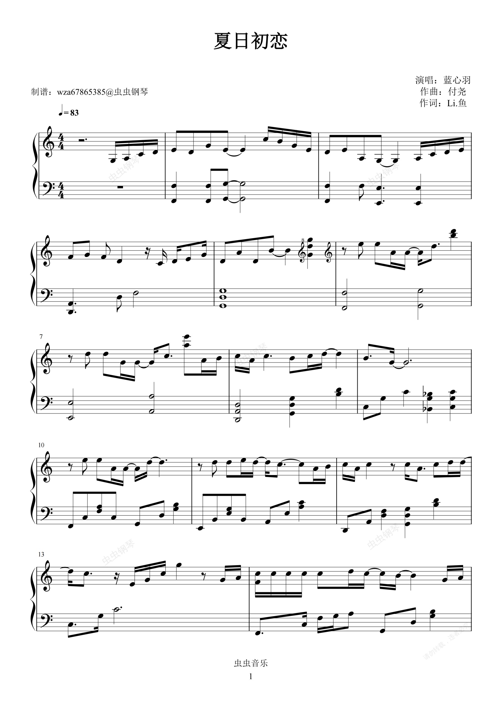 钢琴谱:夏日初恋
