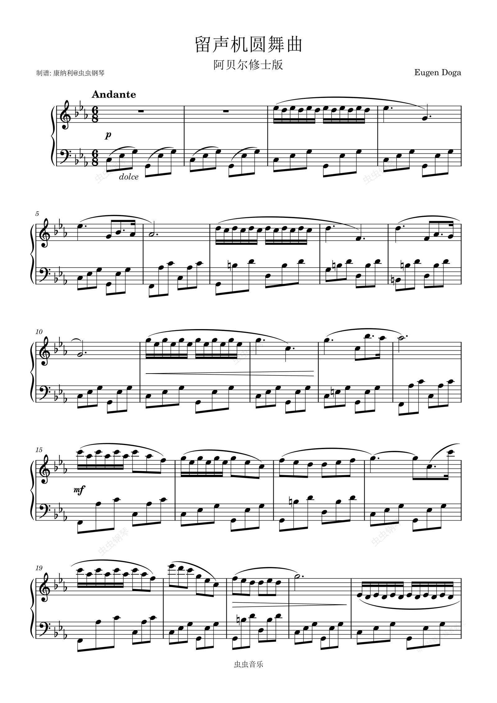 钢琴谱:留声机圆舞曲阿贝尔修士版