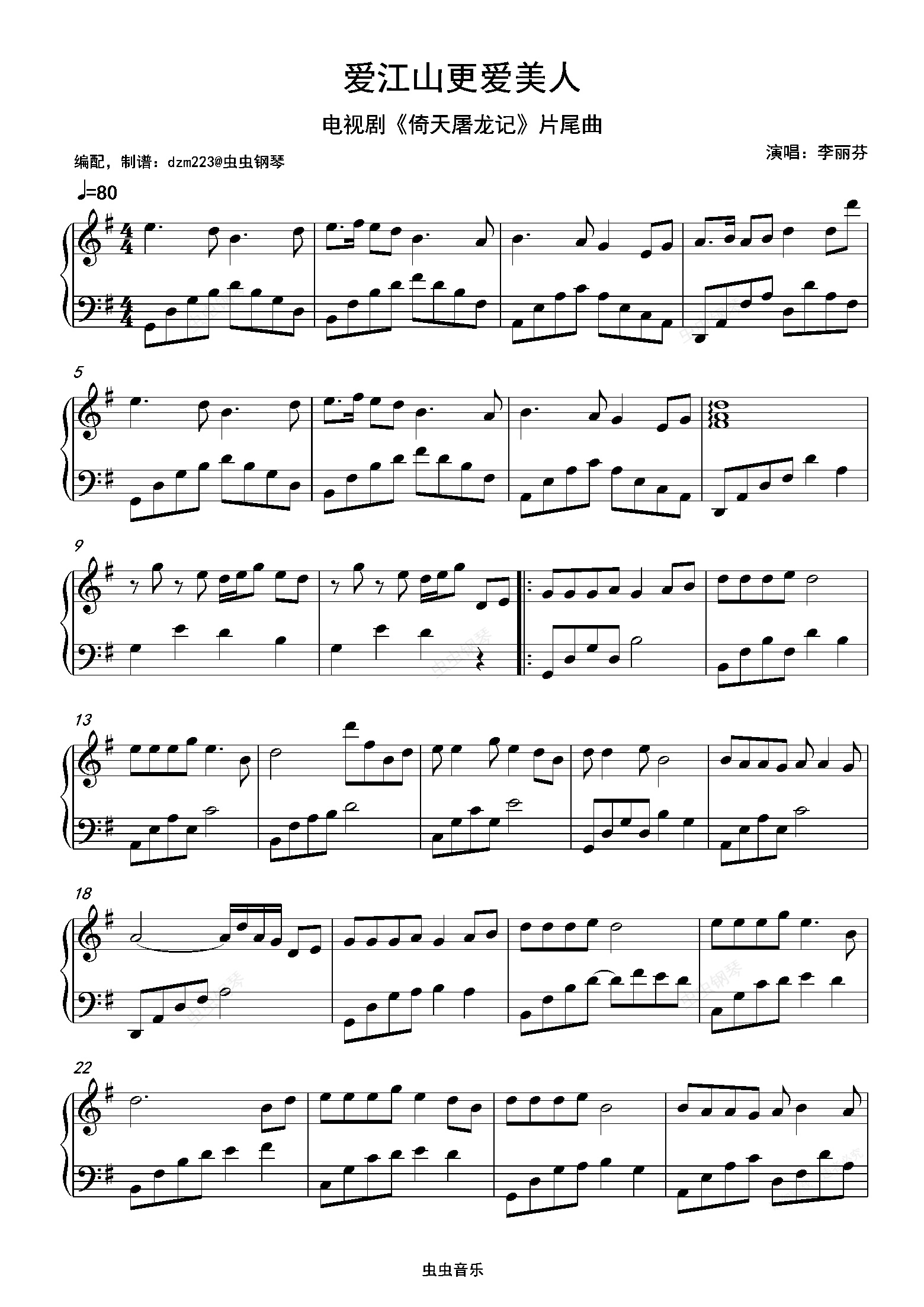 钢琴谱:爱江山更爱美人