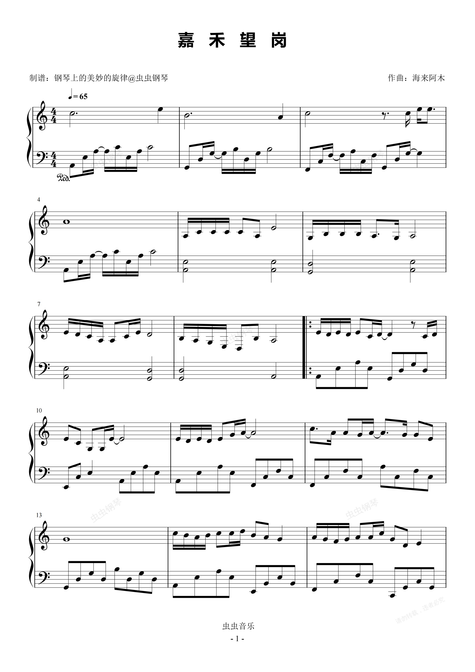 钢琴谱:嘉禾望岗 C调简易版 海来阿木