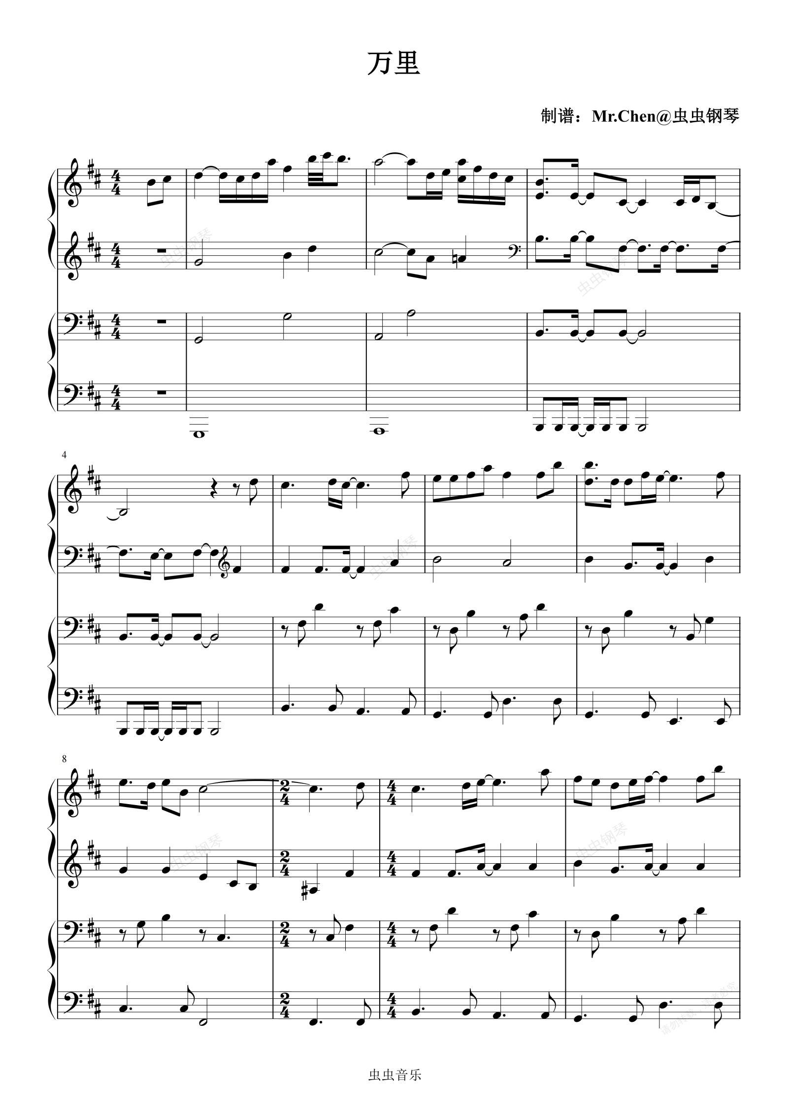 钢琴谱:万里 (四手联弹)- 影视剧《太平年》主题曲
