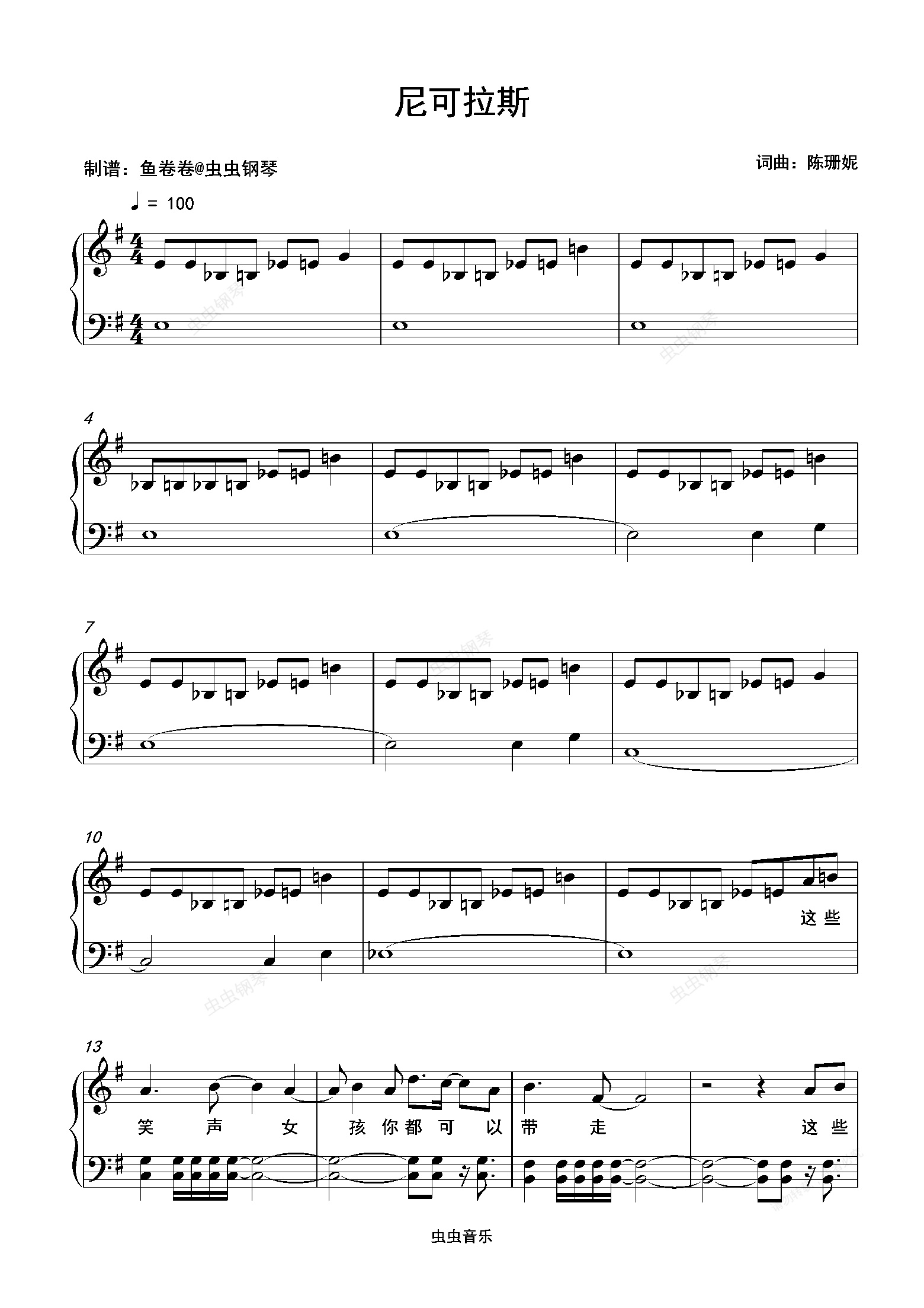 钢琴谱:尼可拉斯-陈珊妮 钢琴谱