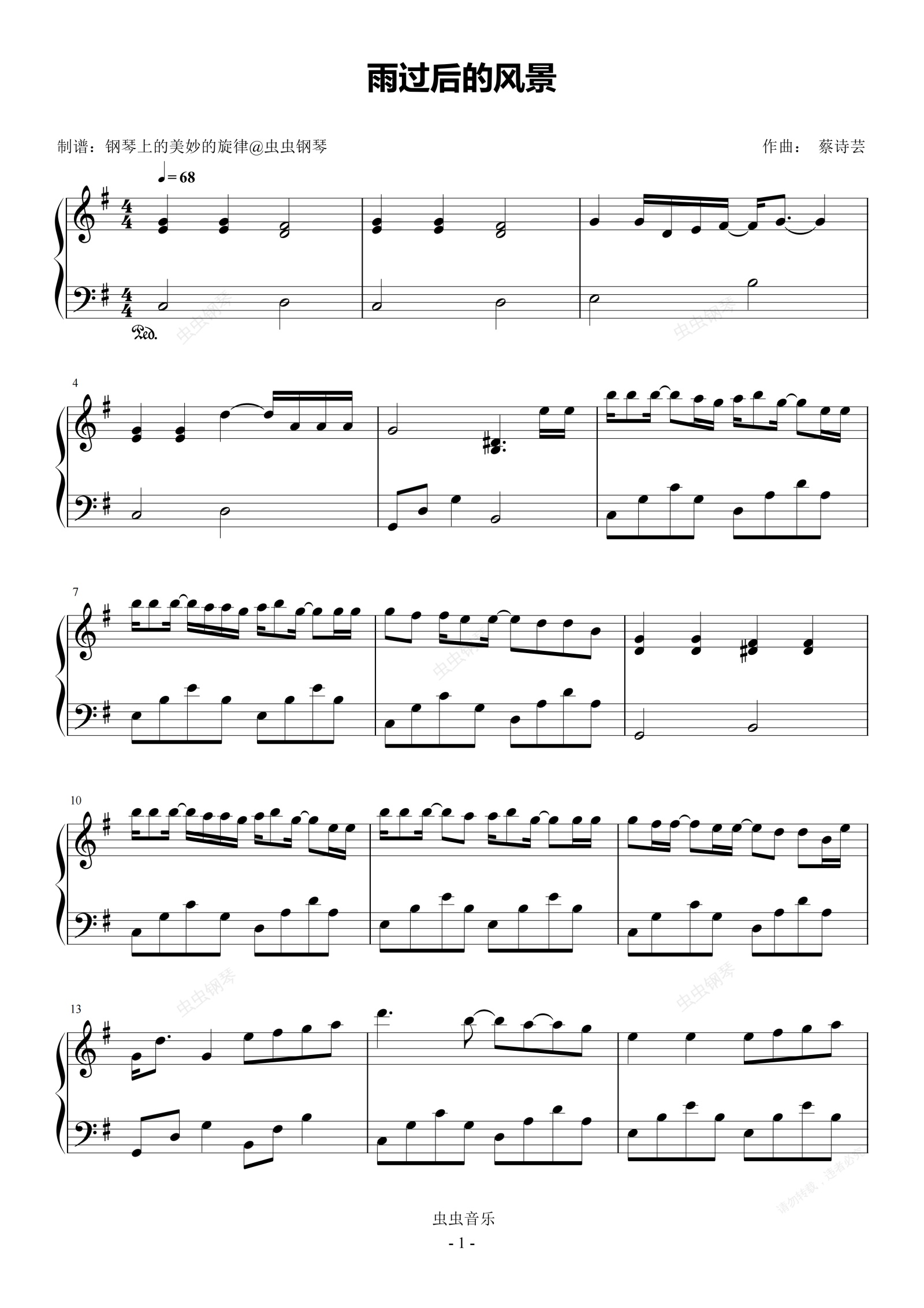 钢琴谱:雨过后的风景 G调简易版 蔡诗芸