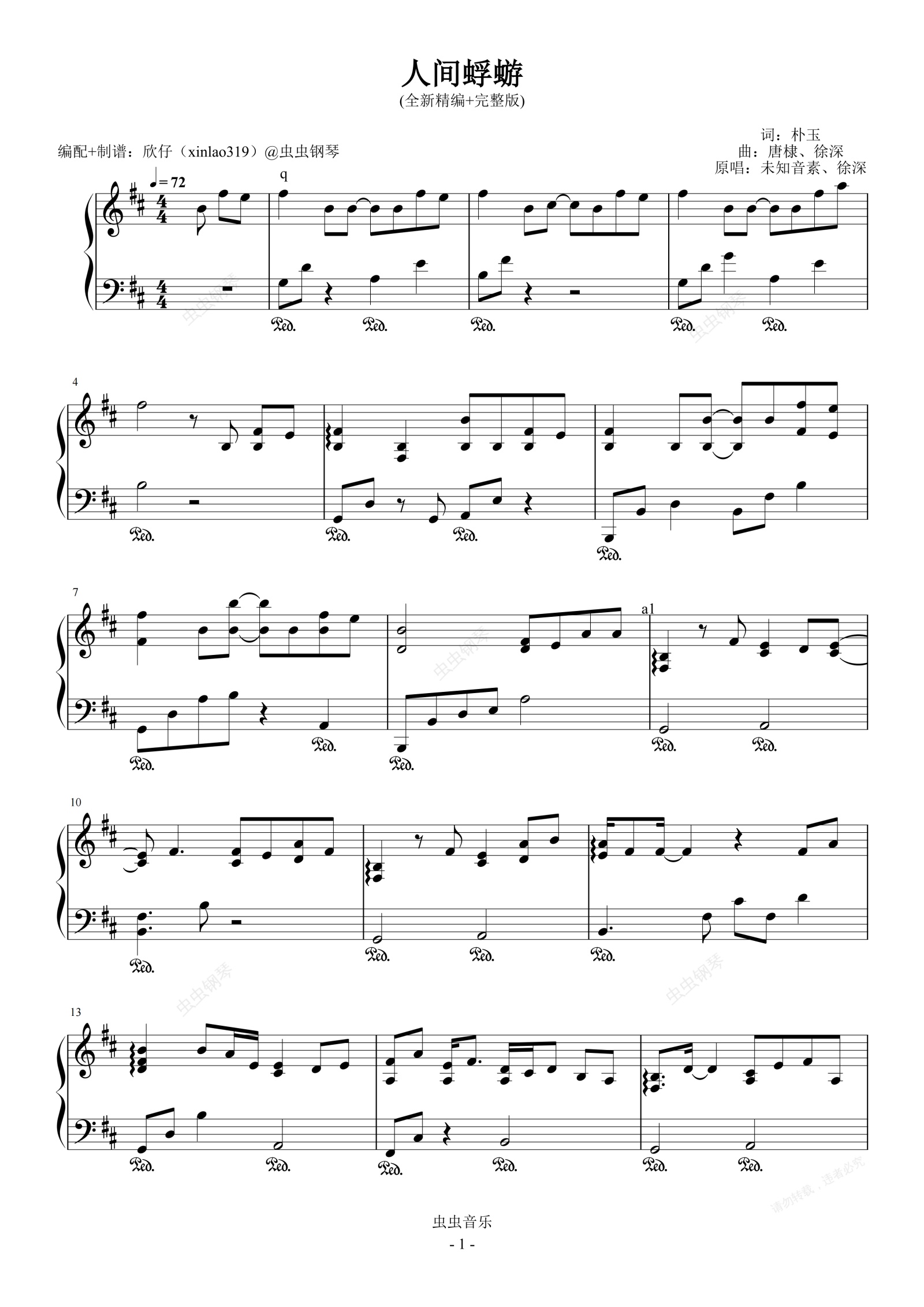 钢琴谱:人间蜉蝣(b、未知音素、徐深、完整版)