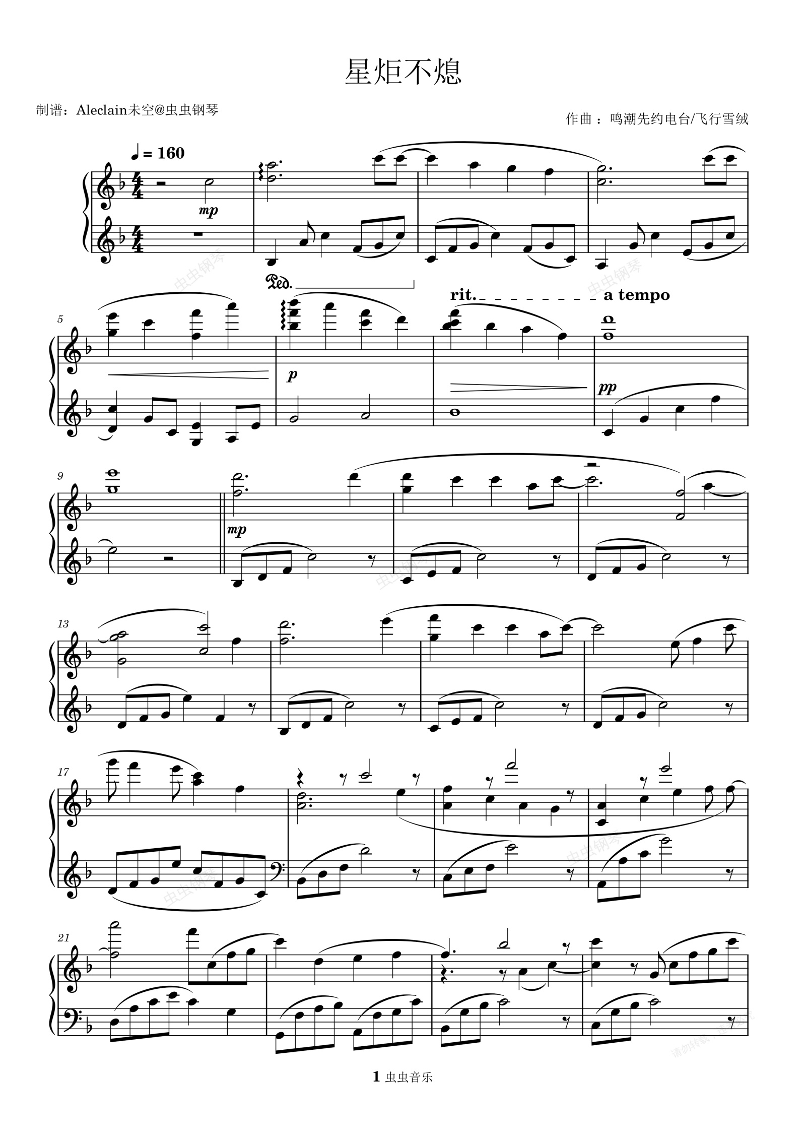 钢琴谱:《星炬不熄》鸣潮先约电台/飞行雪绒(钢琴独奏改编)