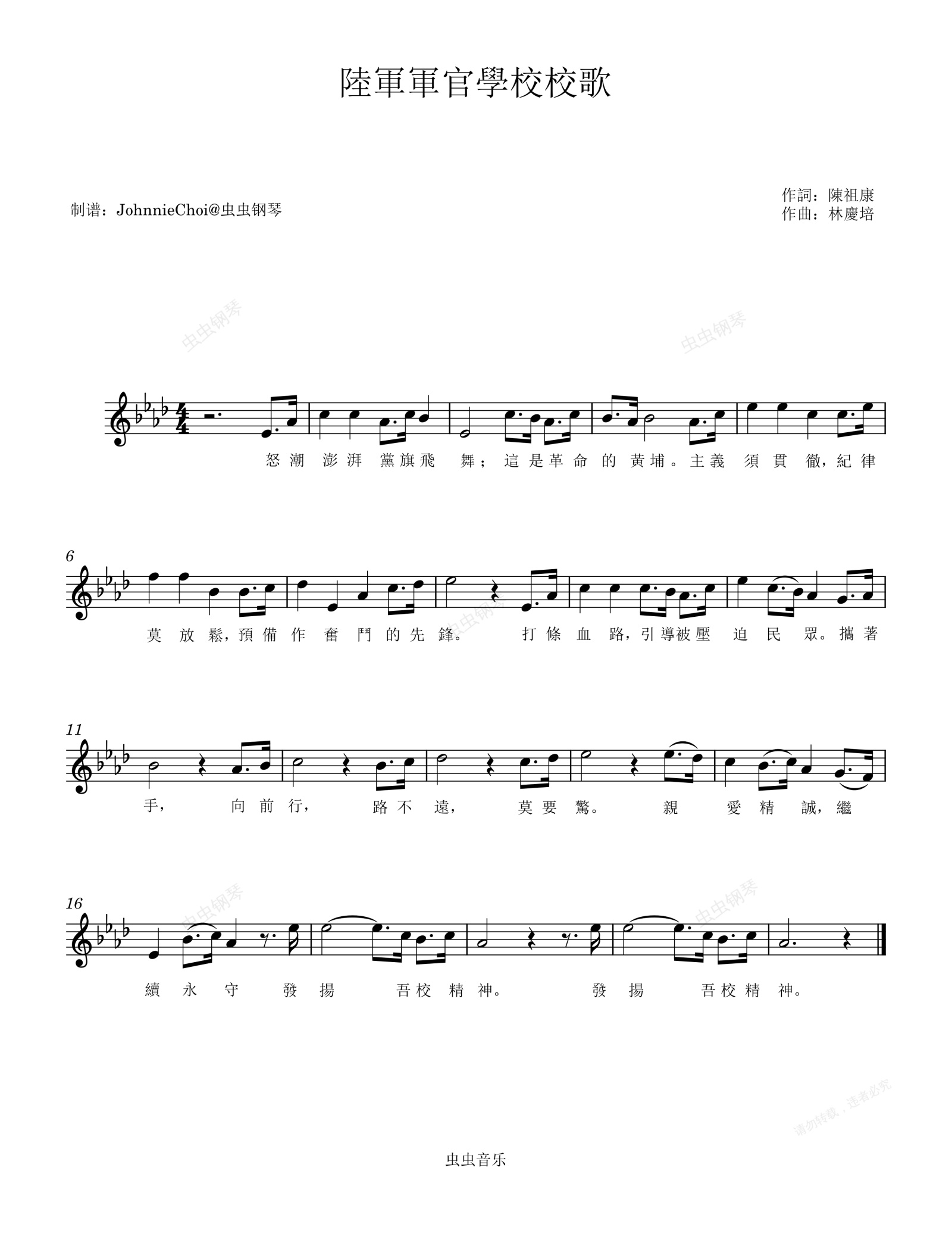 钢琴谱:陆军军官学校校歌-弹唱完整版