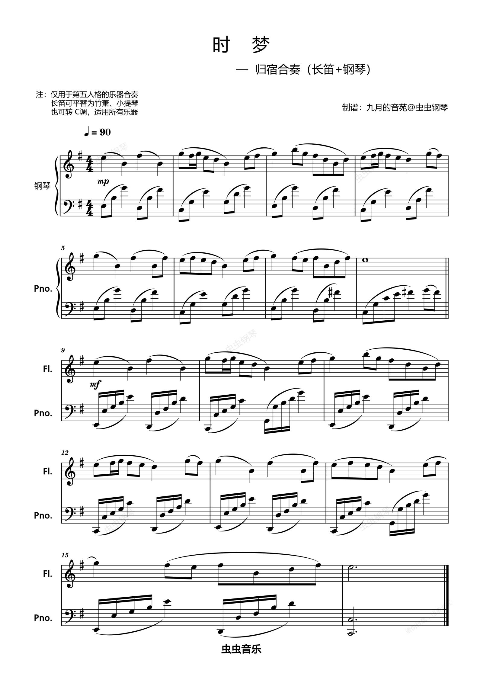 钢琴谱:【时梦】长笛+钢琴 合奏(第五人格 - 归宿演奏)