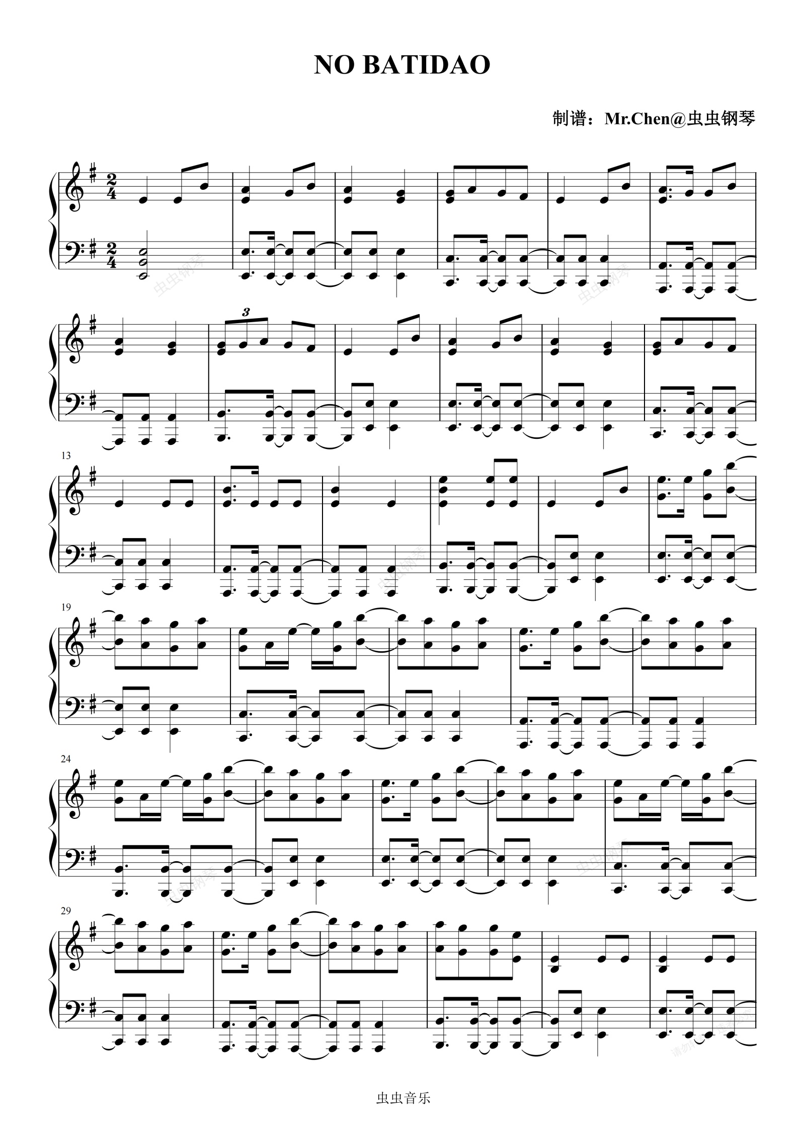 钢琴谱:NO BATLDAO G调 - 卡点の小曲 极度还原