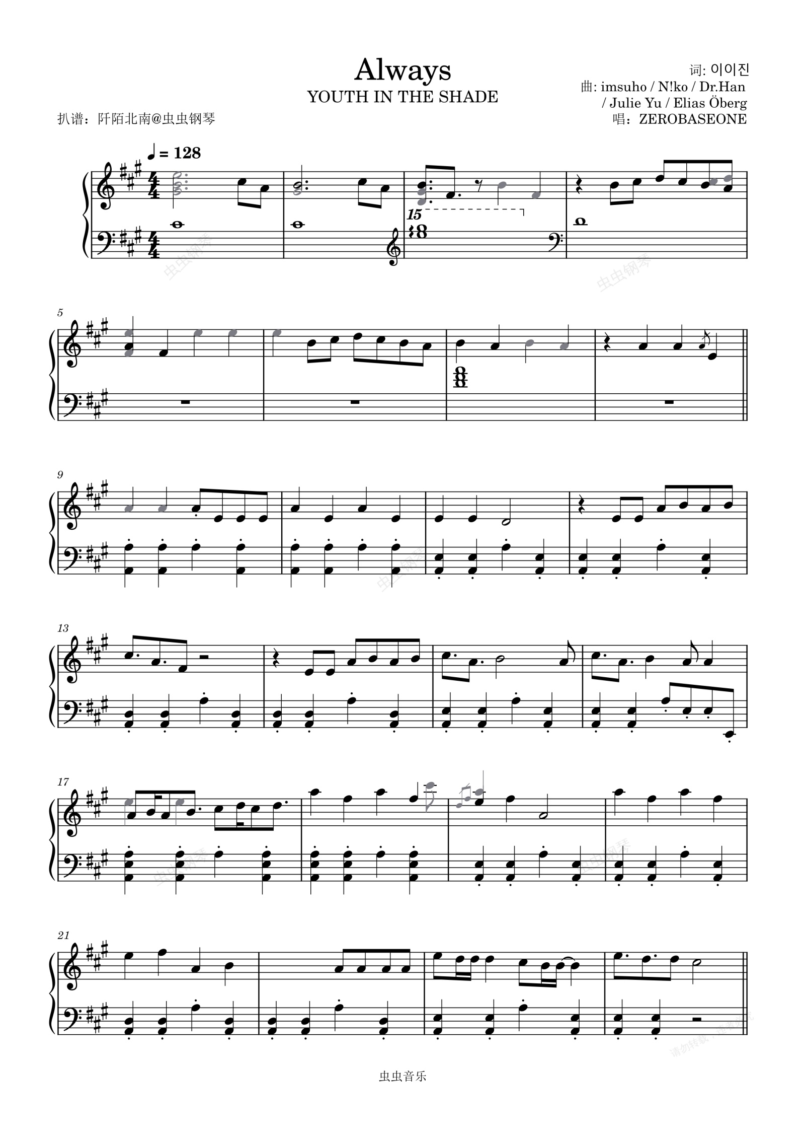 钢琴谱:《Always》【ZEROBASEONE】