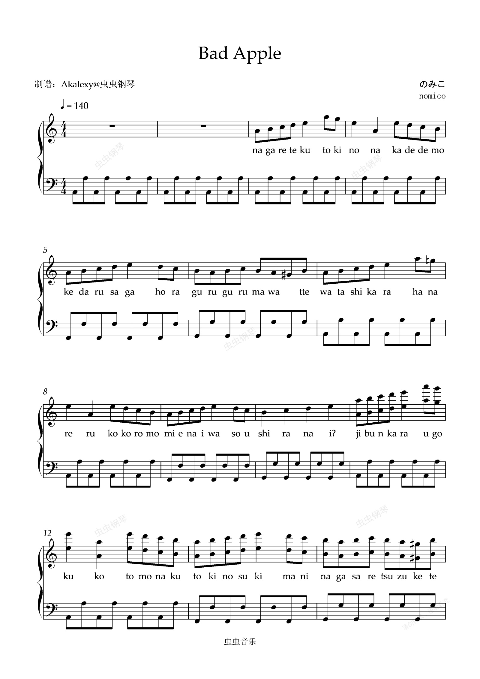 钢琴谱:Bad Apple!!(日语弹唱版)