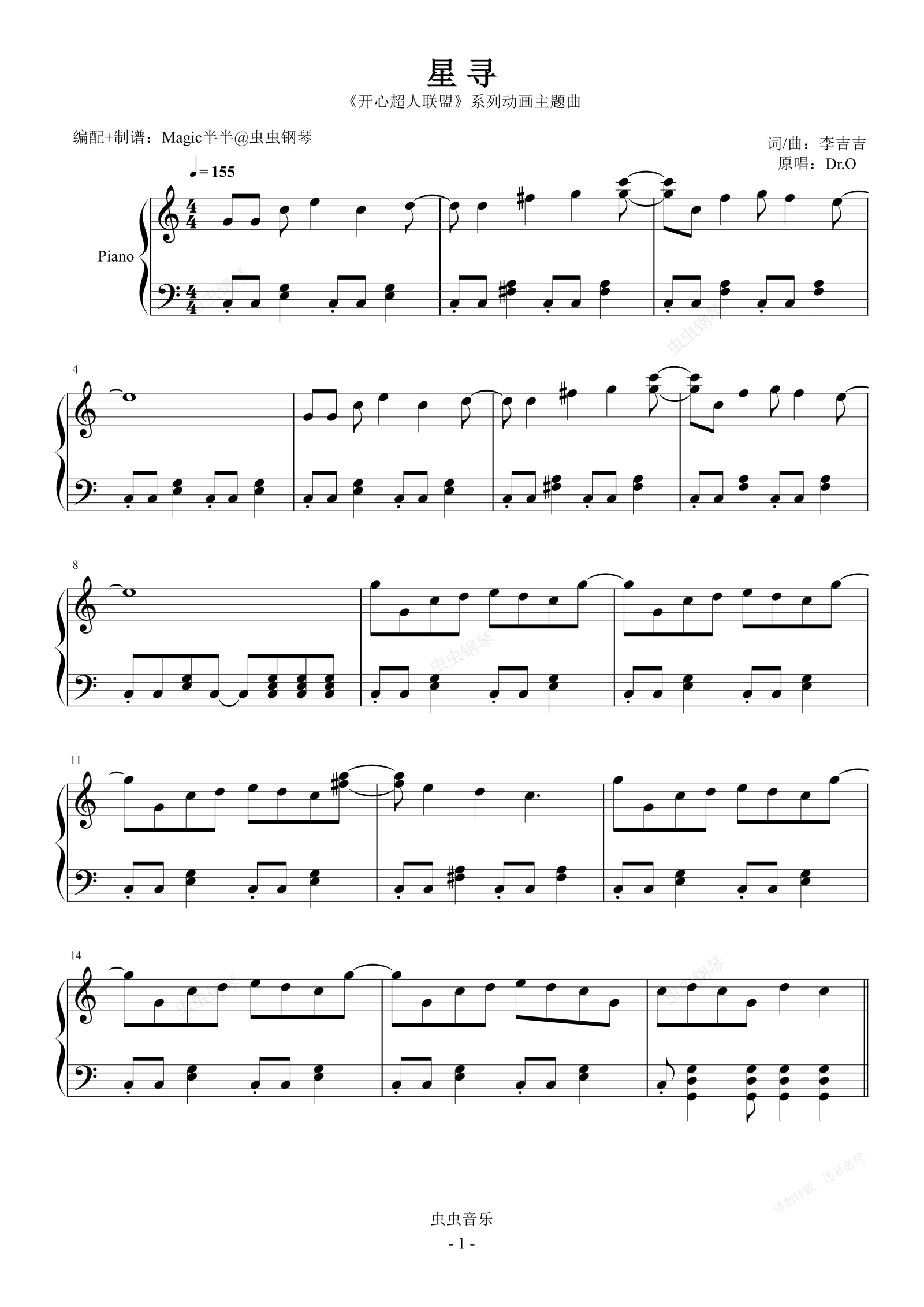 钢琴谱:星寻(动感完整版/独奏C) <开心超人联盟>系列动画主题曲