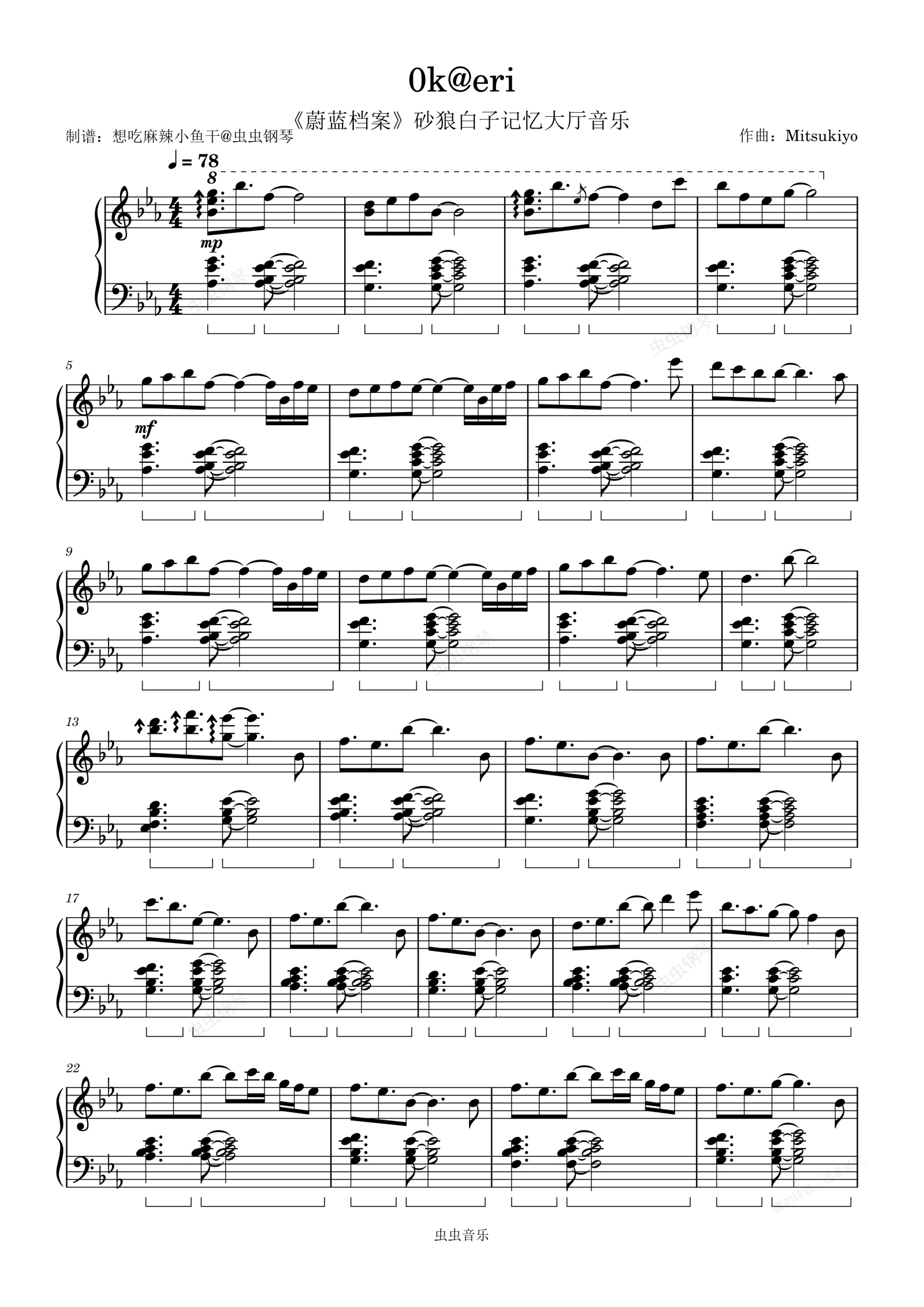 钢琴谱:砂狼白子0k@eri(《蔚蓝档案》砂狼白子记忆大厅音乐)