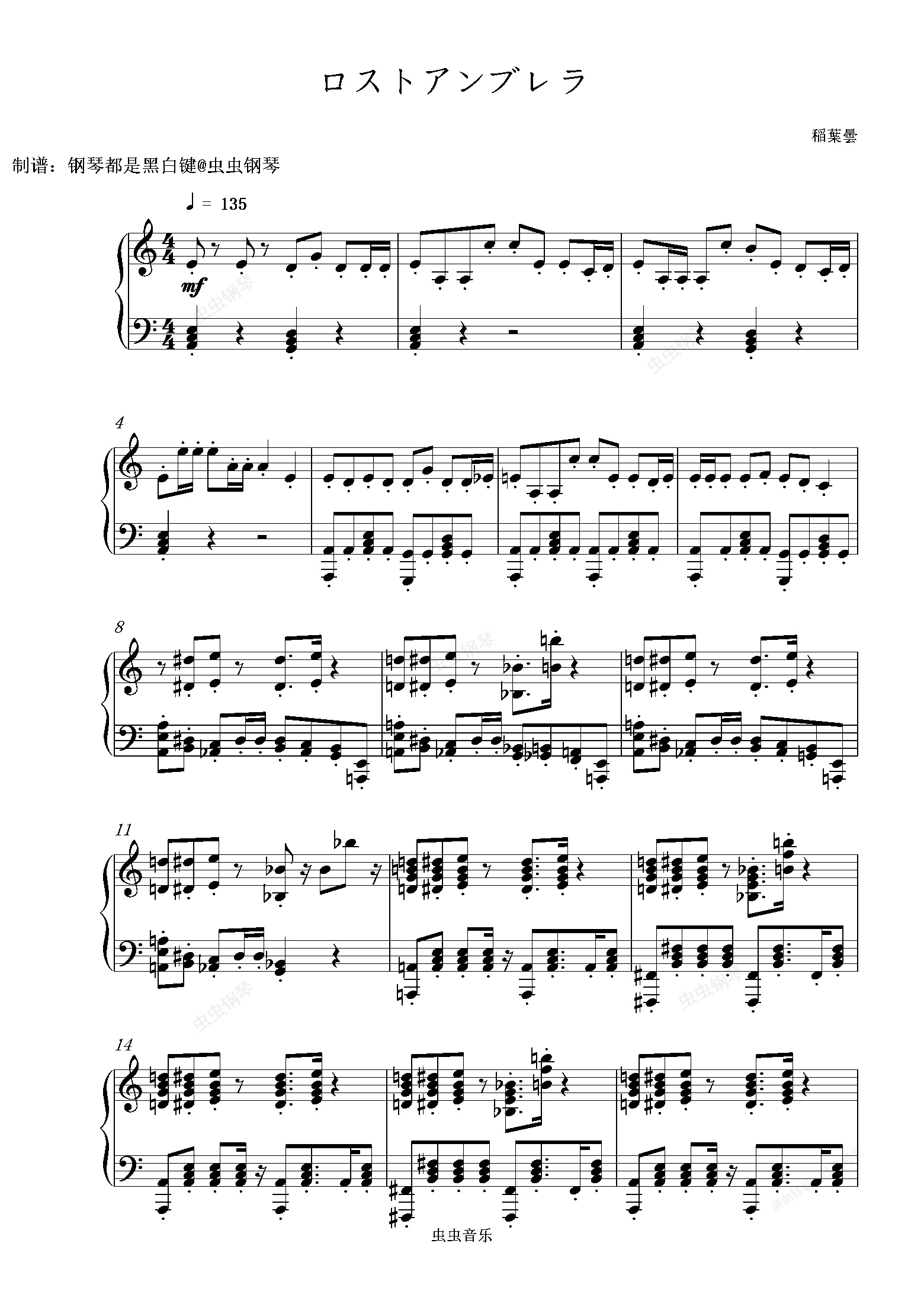 钢琴谱:【歌愛ユキ】丢失的雨伞 / ロストアンブレラ