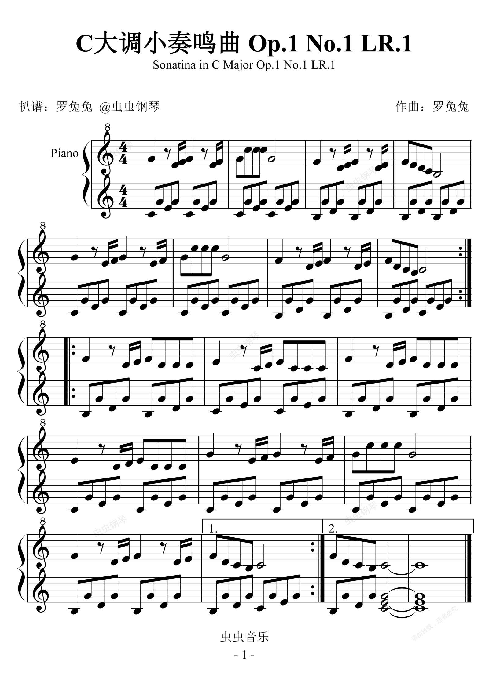 钢琴谱:C大调小奏鸣曲 Op.1 No.1 LR.1