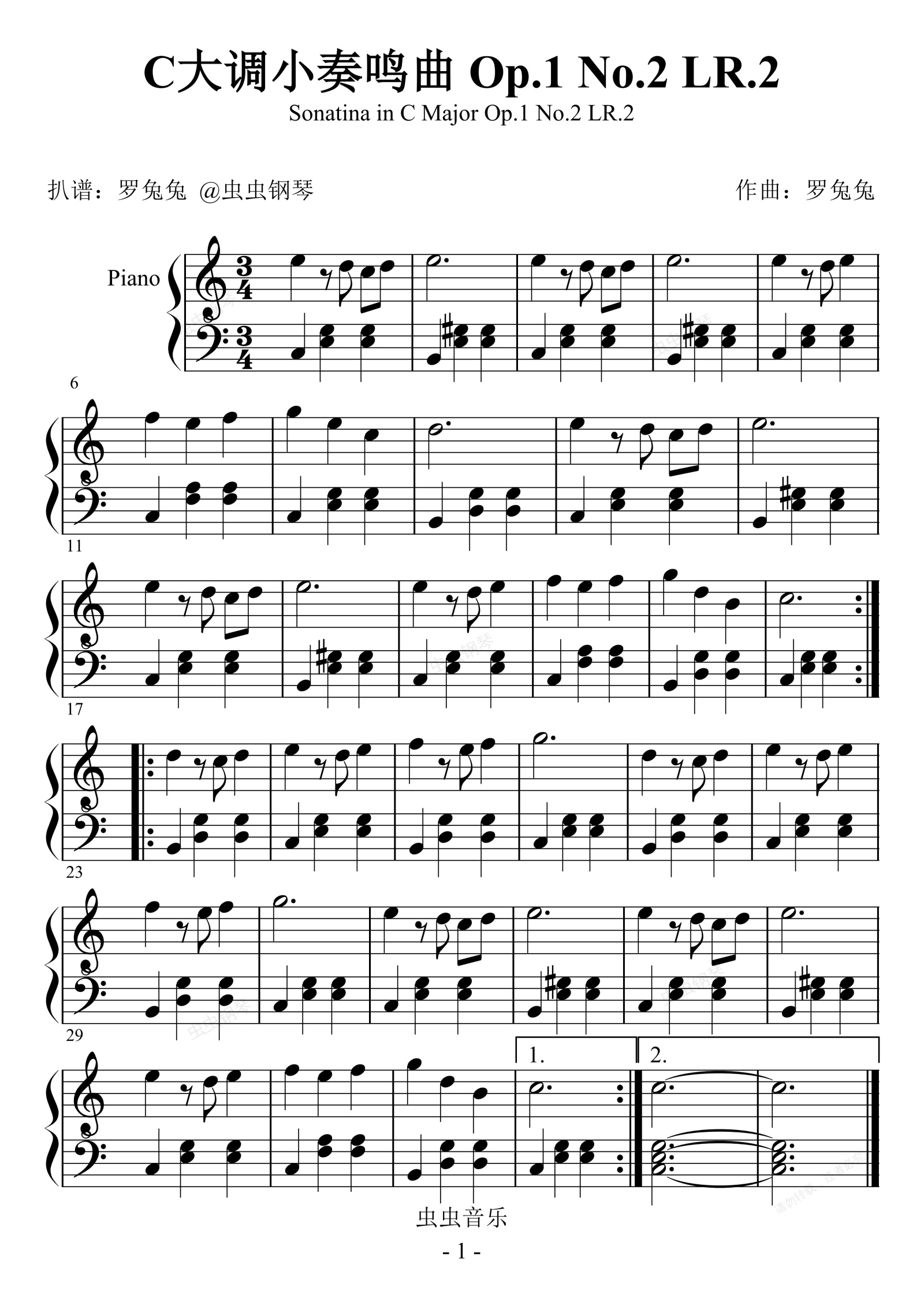 钢琴谱:C大调小奏鸣曲 Op.1 No.2 LR.2