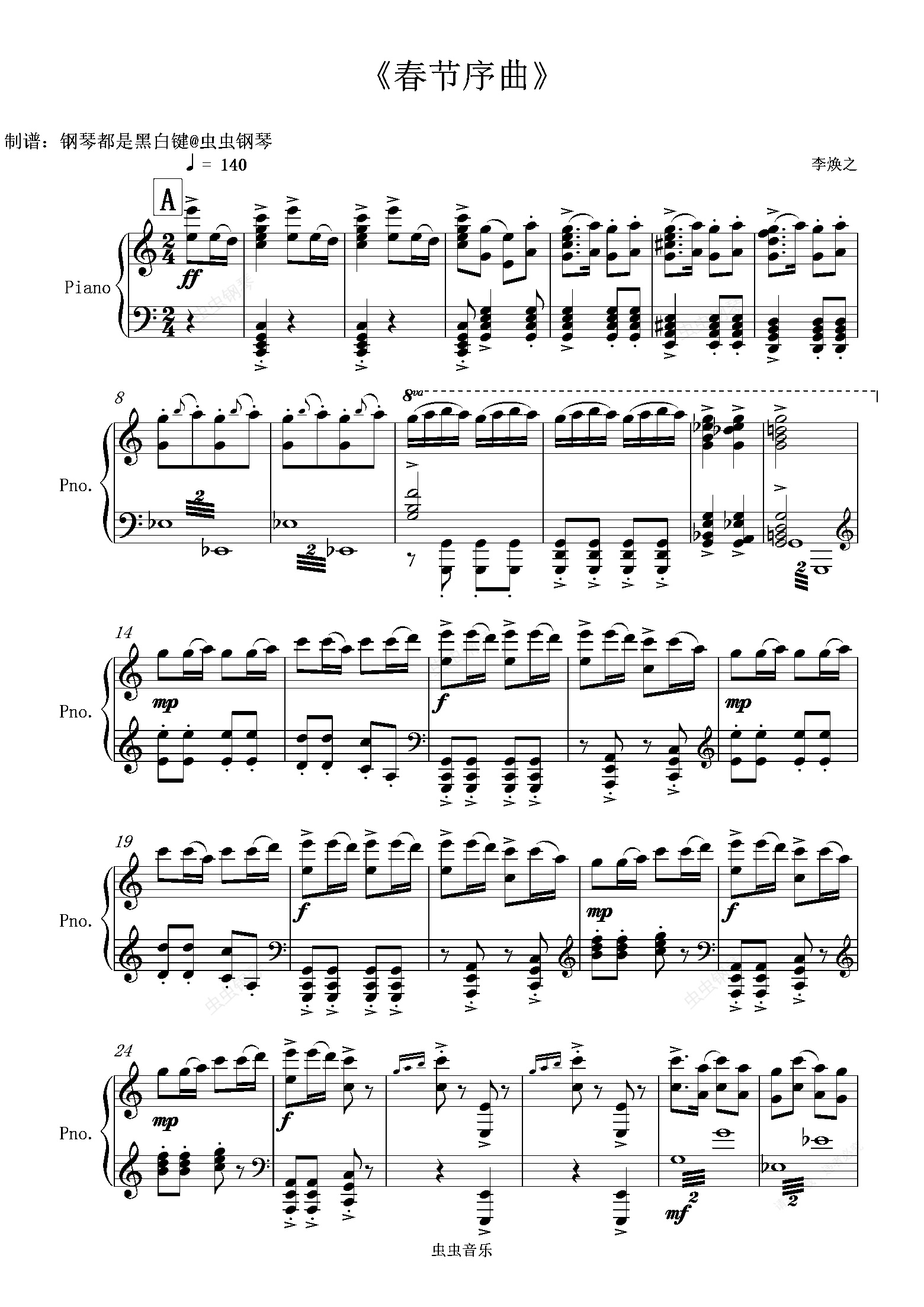 钢琴谱:《春节序曲》 过年必备(爆燃演奏版)