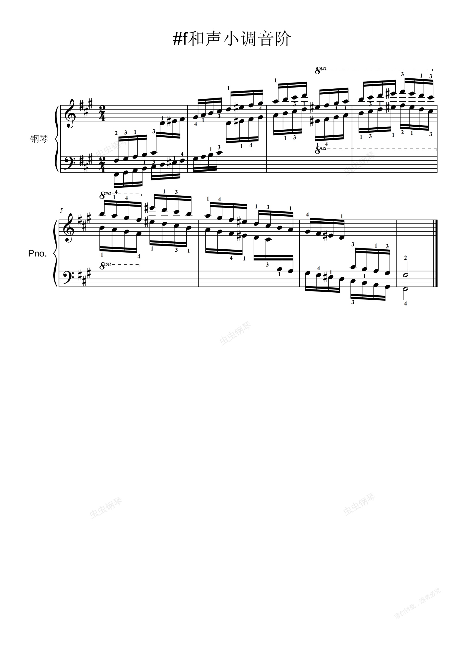 钢琴谱:5-0.#f和声小调音阶
