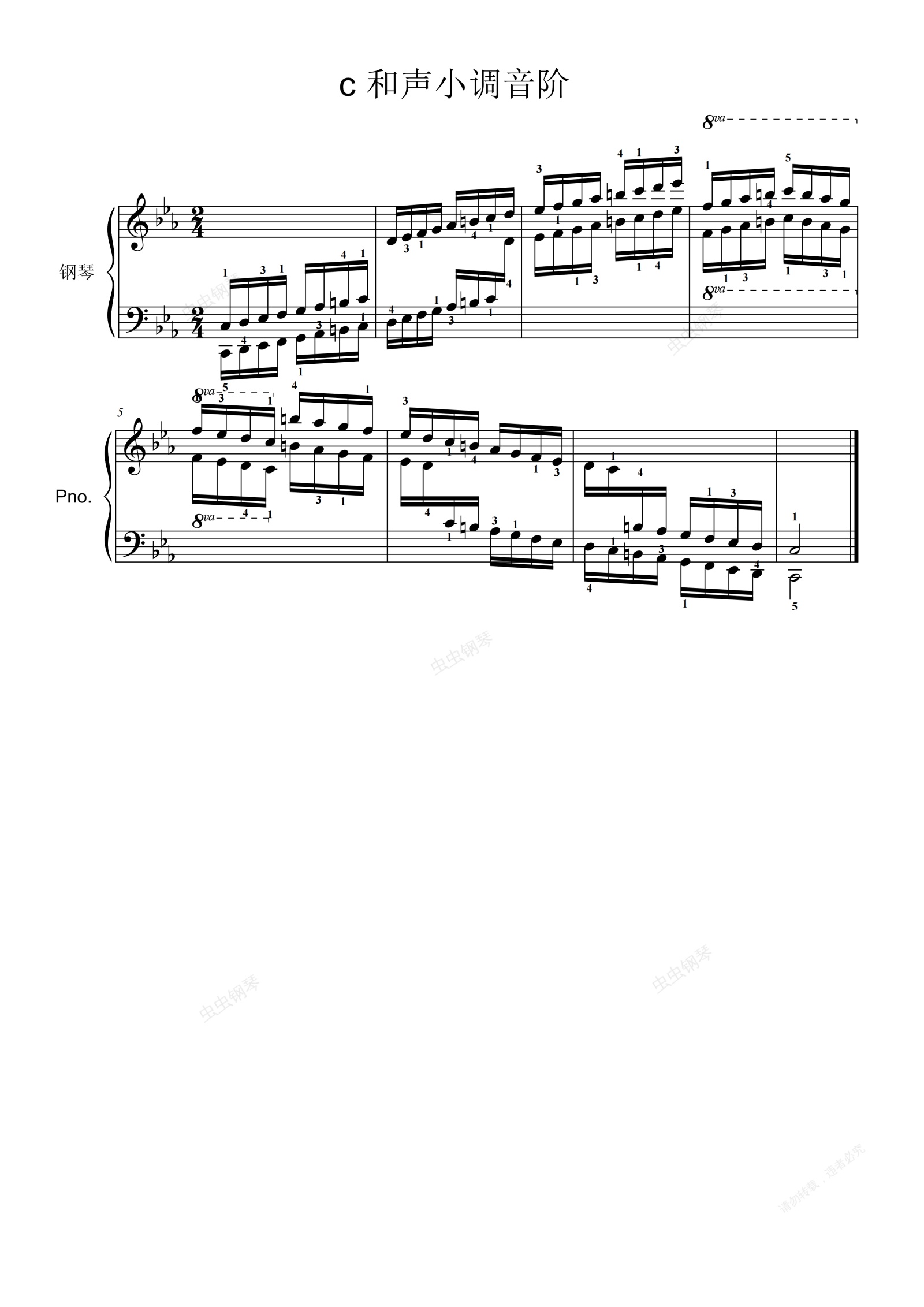 钢琴谱:5-0.c和声小调音阶
