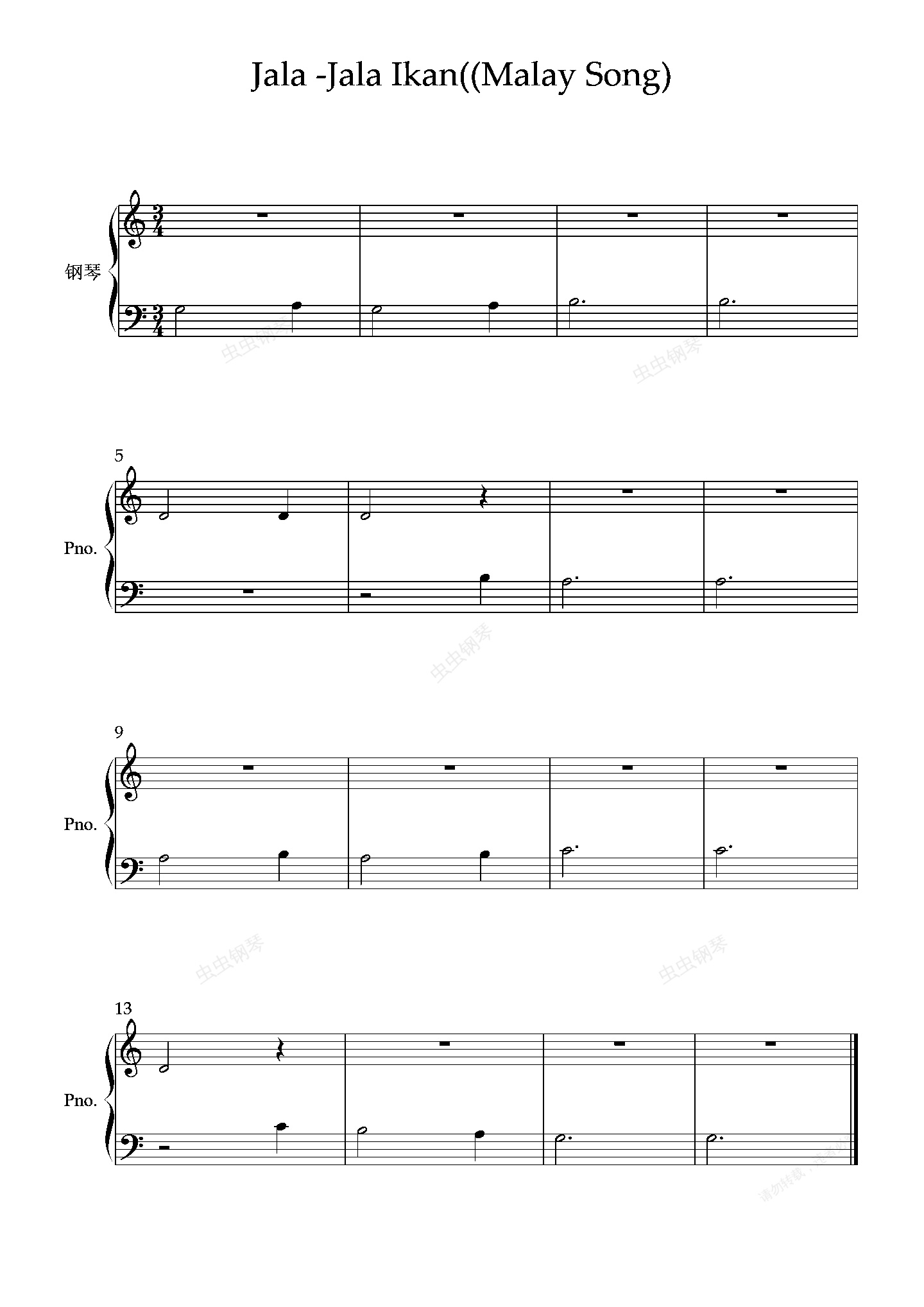 钢琴谱:Jala -Jala Ikan((Malay Song)