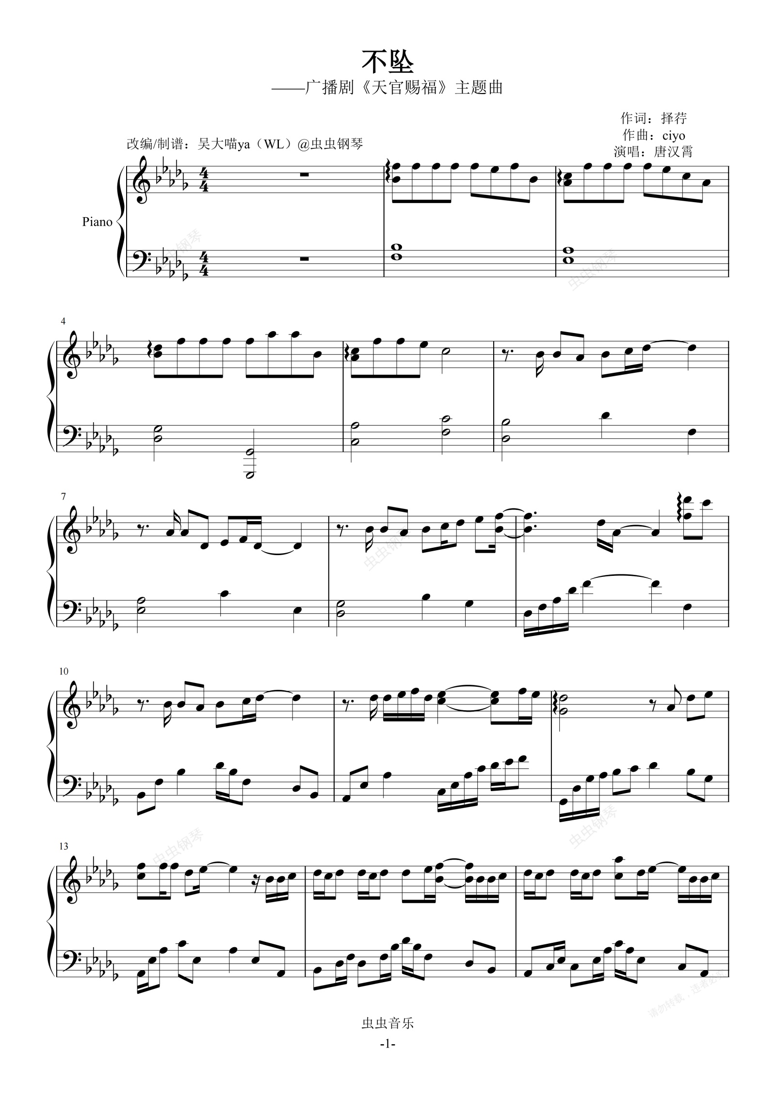钢琴谱:不坠-广播剧《天官赐福》主题曲 原调