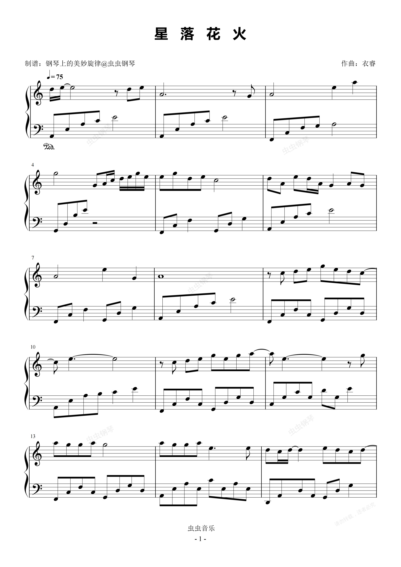 钢琴谱:星落花火 C调简易版 白鹿 唐宫奇案之青雾风鸣