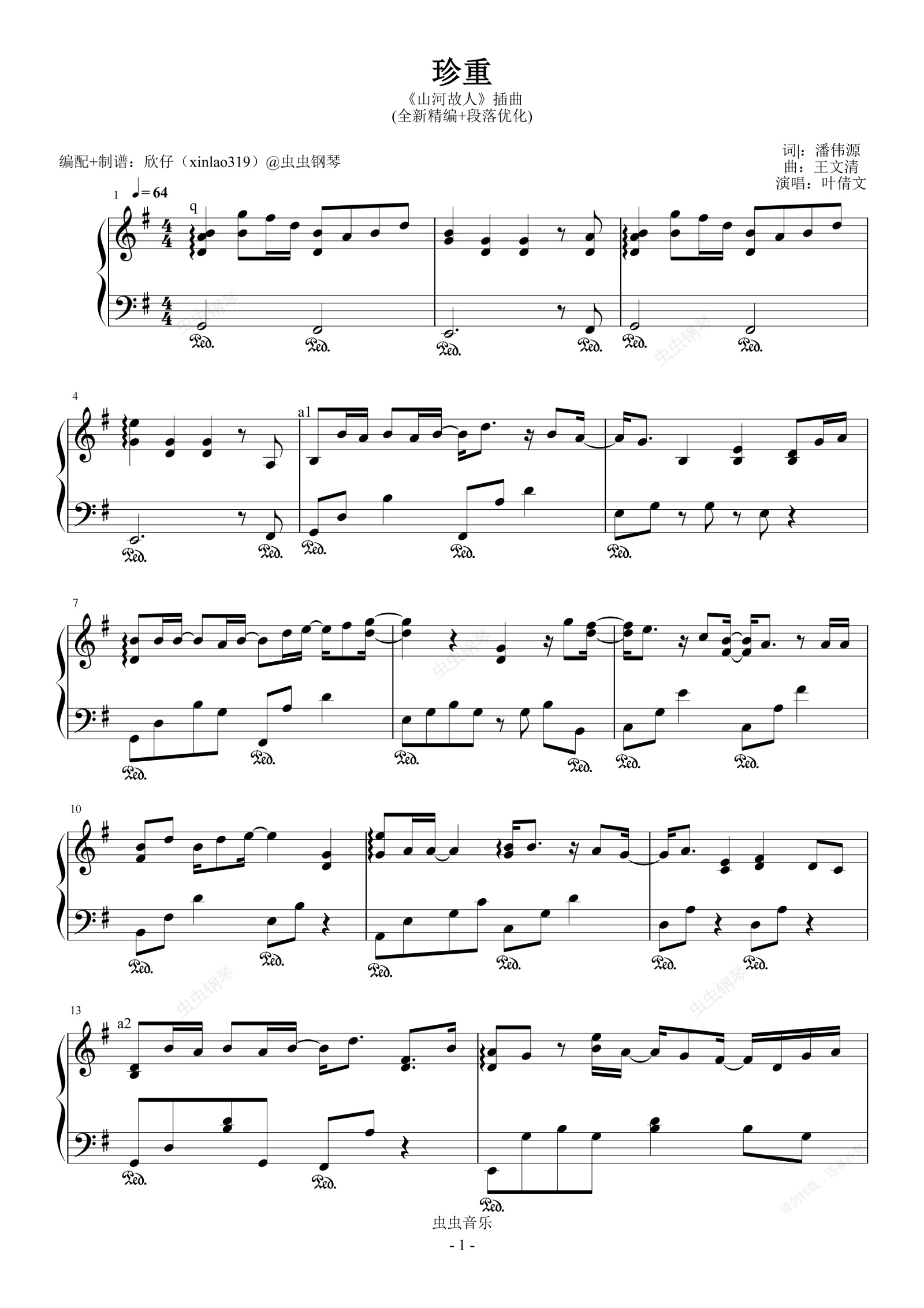 钢琴谱:珍重(G、叶倩文、全新精编+段落优化)