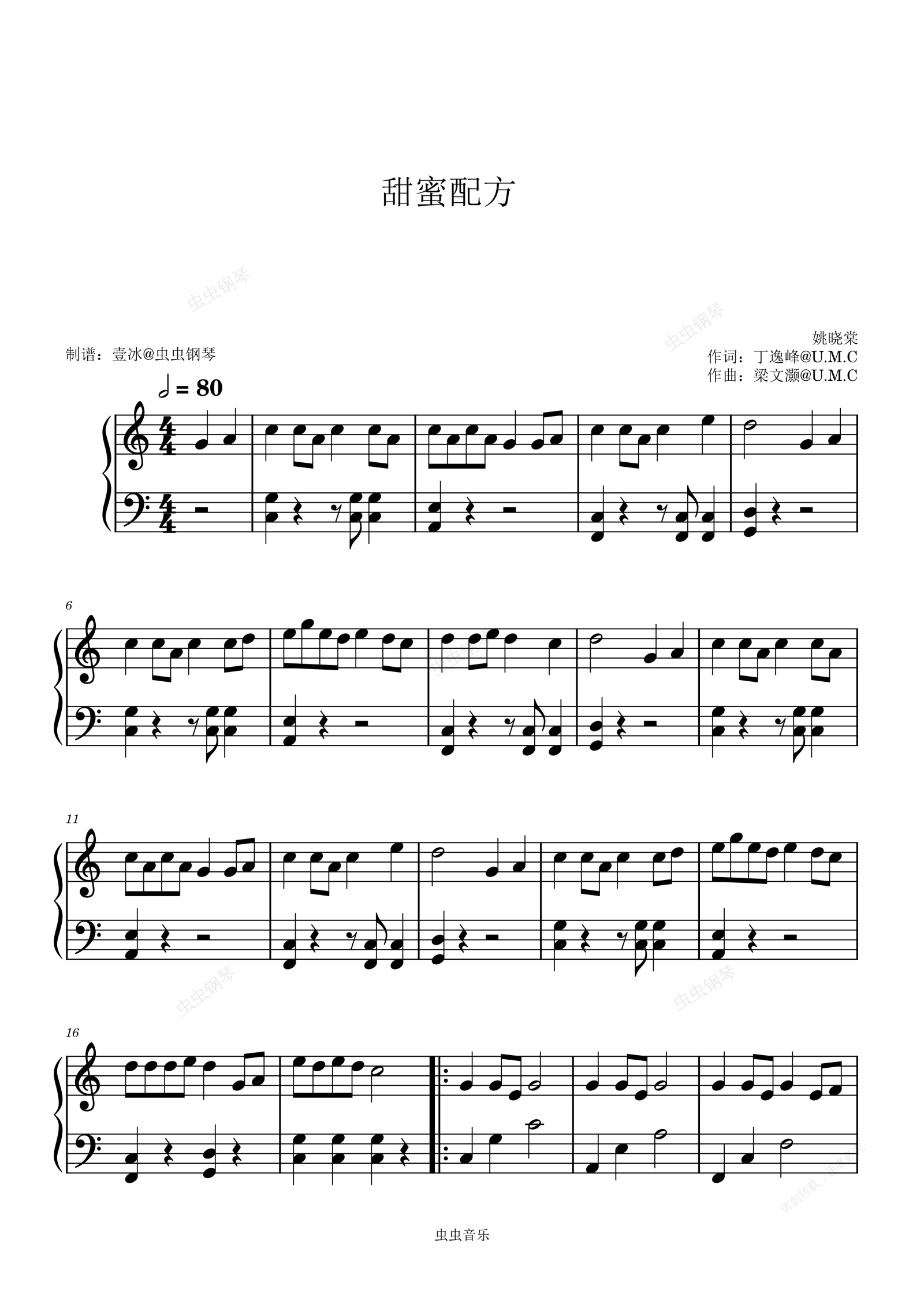 钢琴谱:甜蜜配方 - //《成何体统》插曲姚晓棠 C调