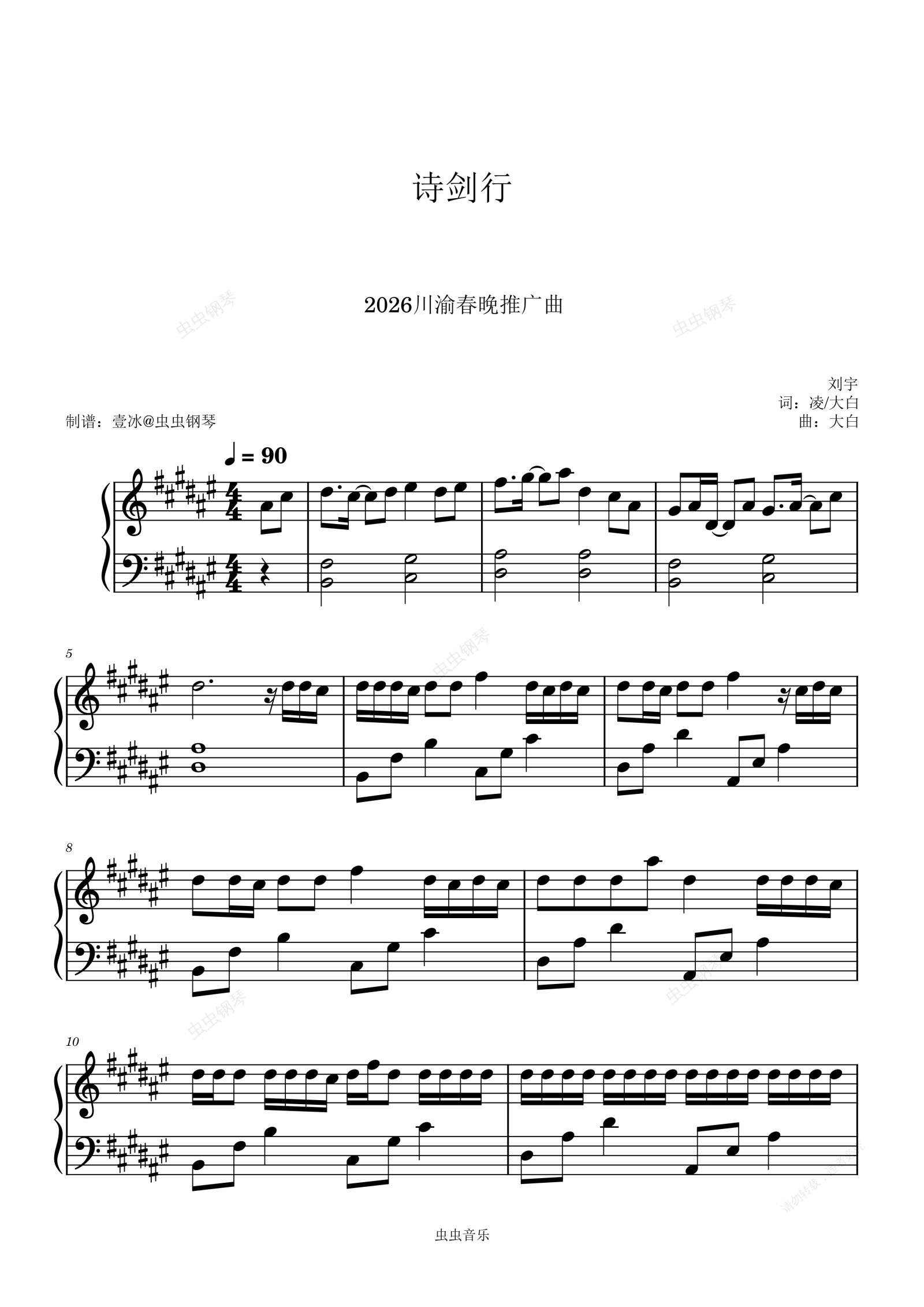 钢琴谱:诗剑行 (2026川渝春晚推广曲) - 刘宇 原调