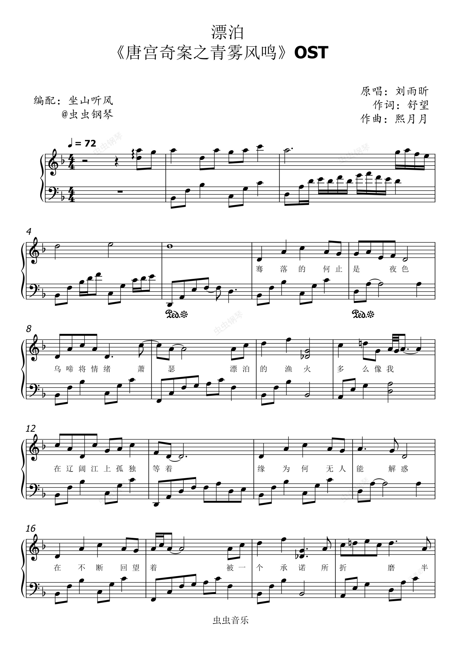 钢琴谱:漂泊——《唐宫奇案之青雾风鸣》OST