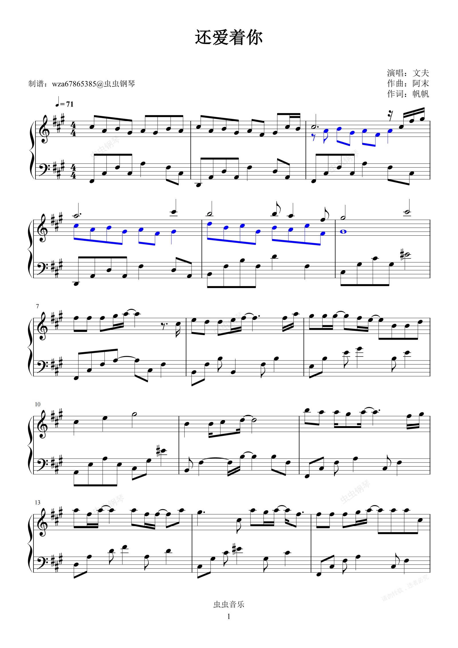 钢琴谱:还爱着你