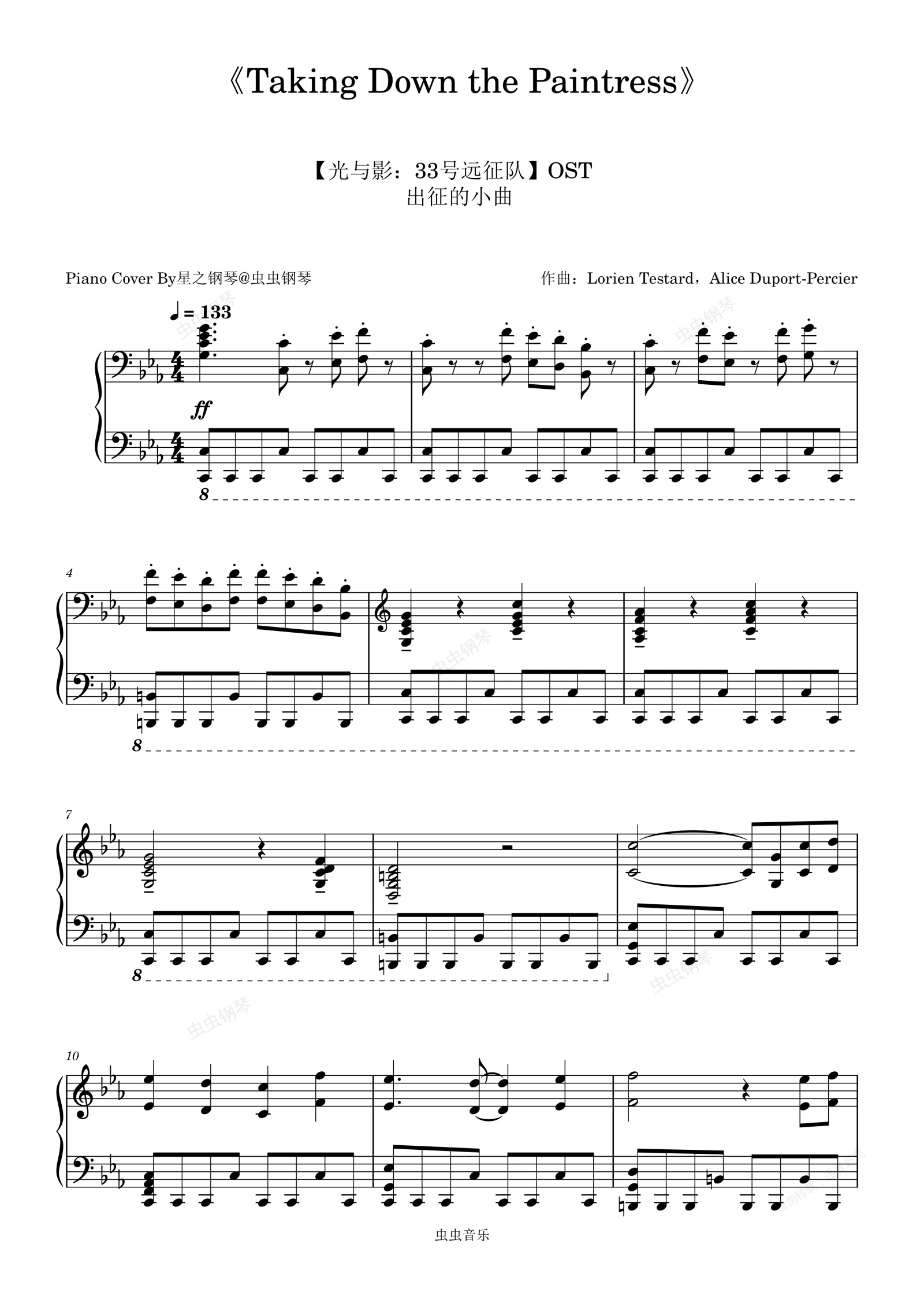 钢琴谱:【光与影:33号远征队】出征的小曲《Taking Down the Paintress》钢琴还原独奏版~星之钢琴~