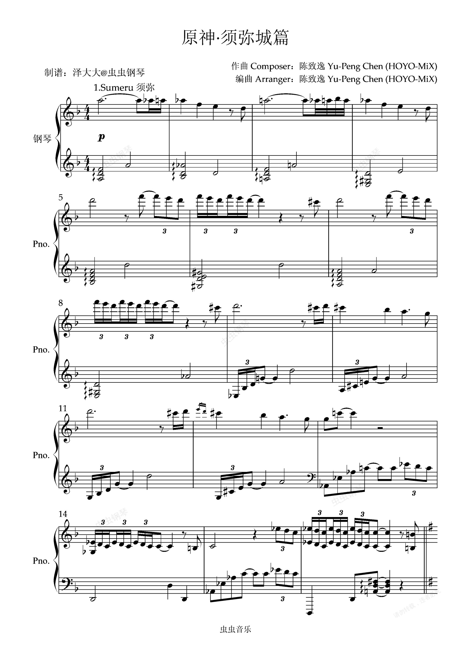 钢琴谱:【原神】须弥城篇22首超长合集 泽大大 陈致逸