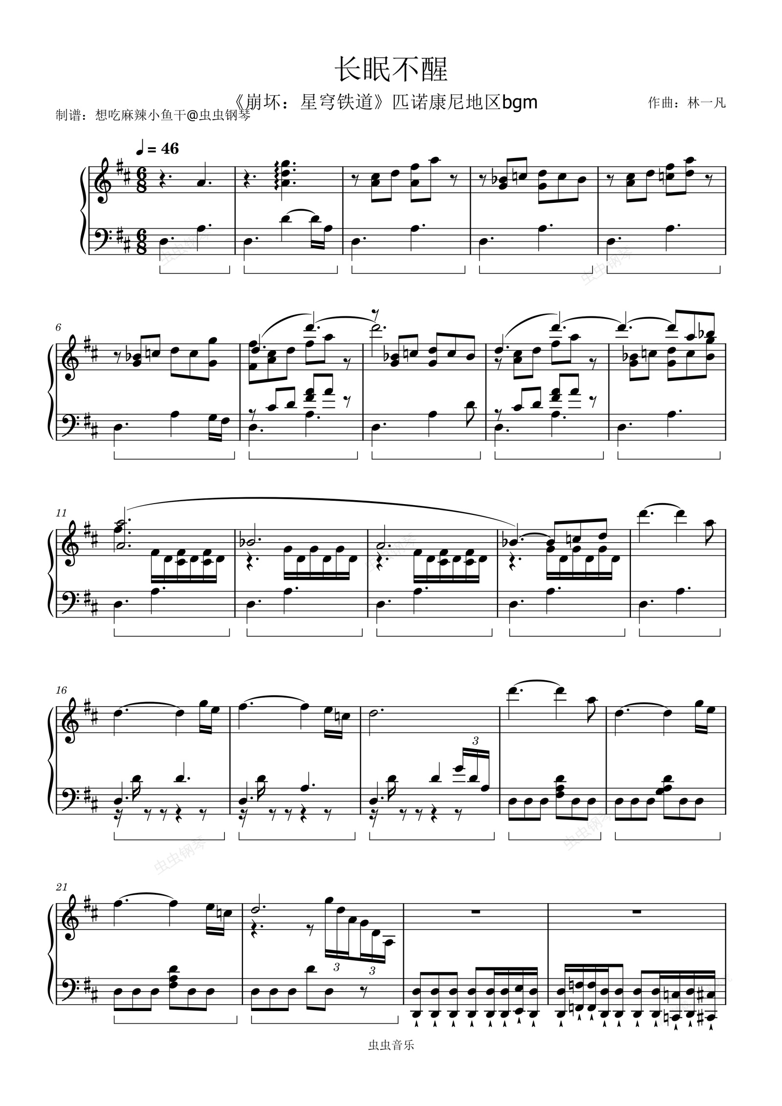 钢琴谱:长眠不醒(《崩坏:星穹铁道》匹诺康尼地区bgm)